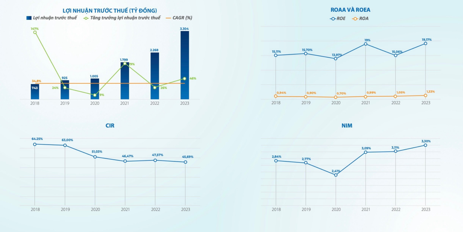 Các chỉ tiêu hiệu quả hoạt động của Nam A Bank trong năm 2023