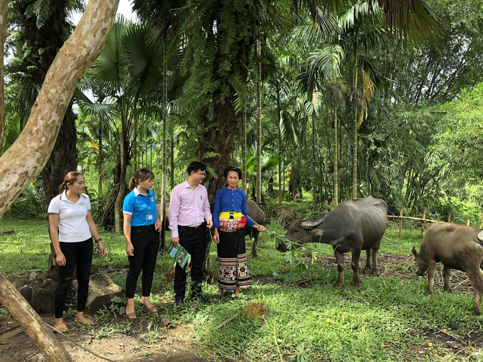 Hộ Vi Thị Thơm, Tổ Lang Thị Thìn thôn Lâu Quán, xã Thanh quân, huyện Như Xuân vay 100 triệu đồng theo chương trình cho vay Hộ nghèo để chăn nuôi trâu và trồng cây cam.