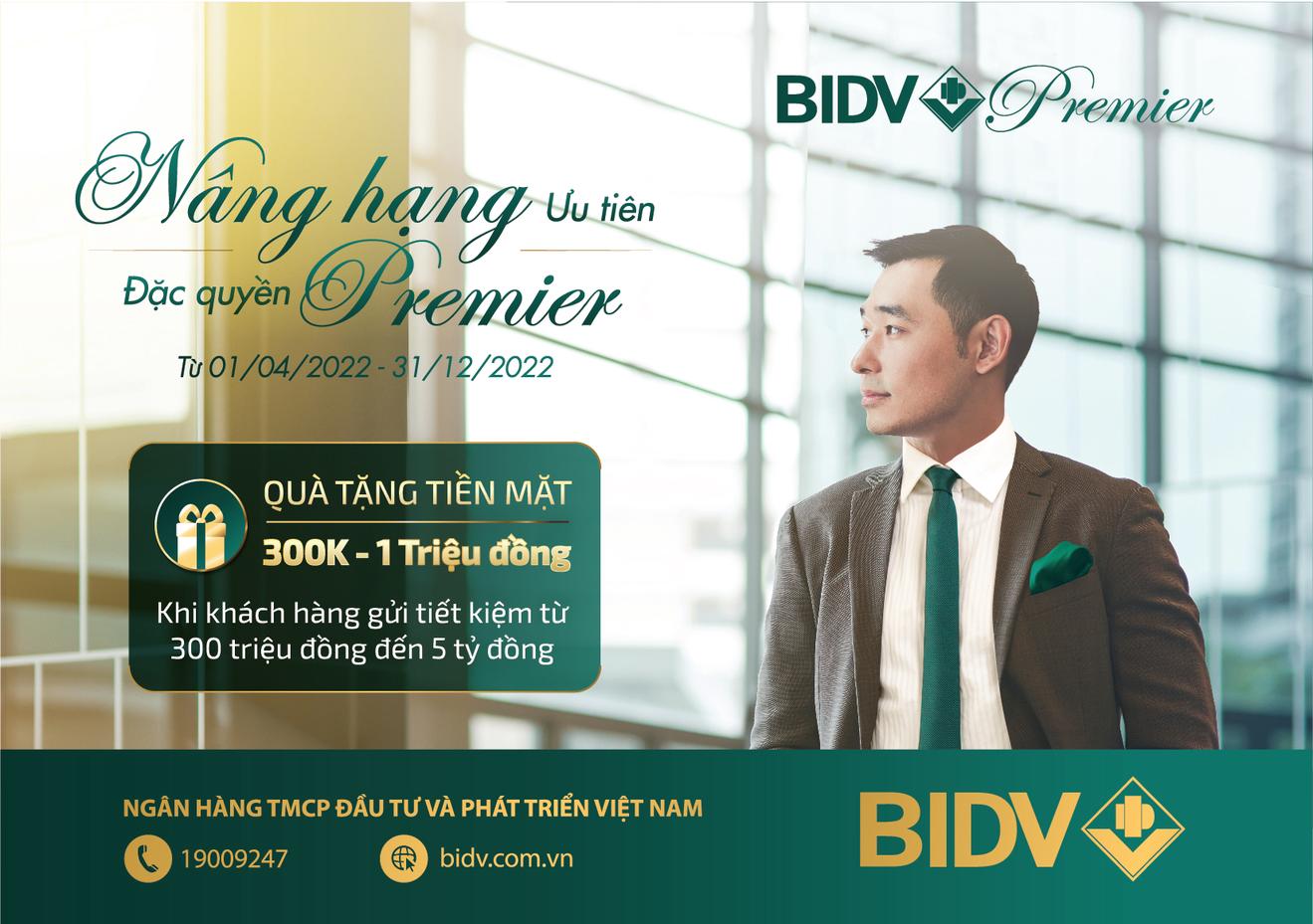 (Thanh tra)- Từ 01/04/2022, khi trở thành khách hàng cao cấp hạng Premier của BIDV, bạn sẽ được nhận ngay quà tặng tiền mặt lên tới 01 triệu đồng và hưởng trọn vẹn nhiều ưu đãi đặc biệt dành cho phân khúc này.