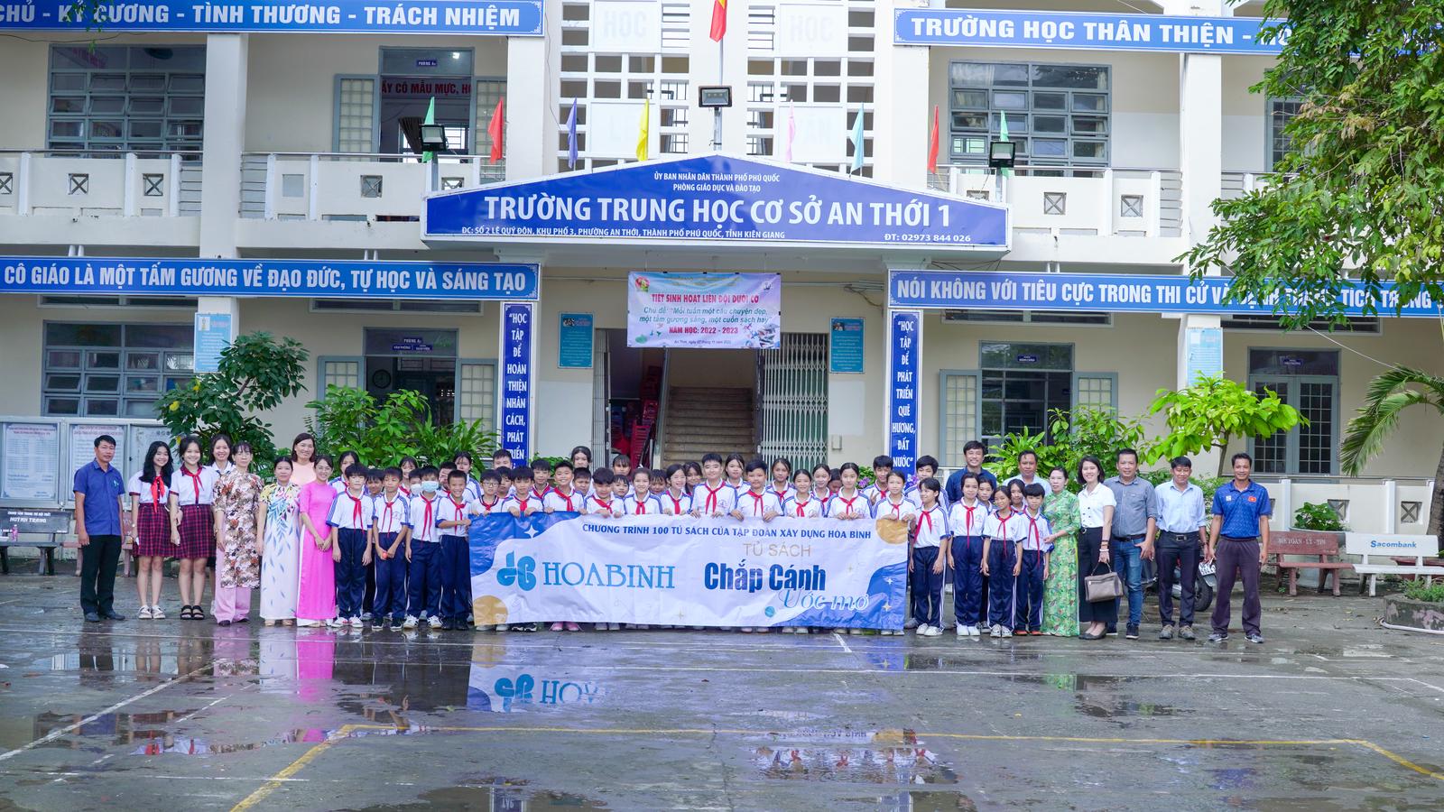 Hòa Bình trao tặng 100 tủ sách "Chắp cánh ước mơ" đến các trưởng tiểu học, THCS trong cả nước.