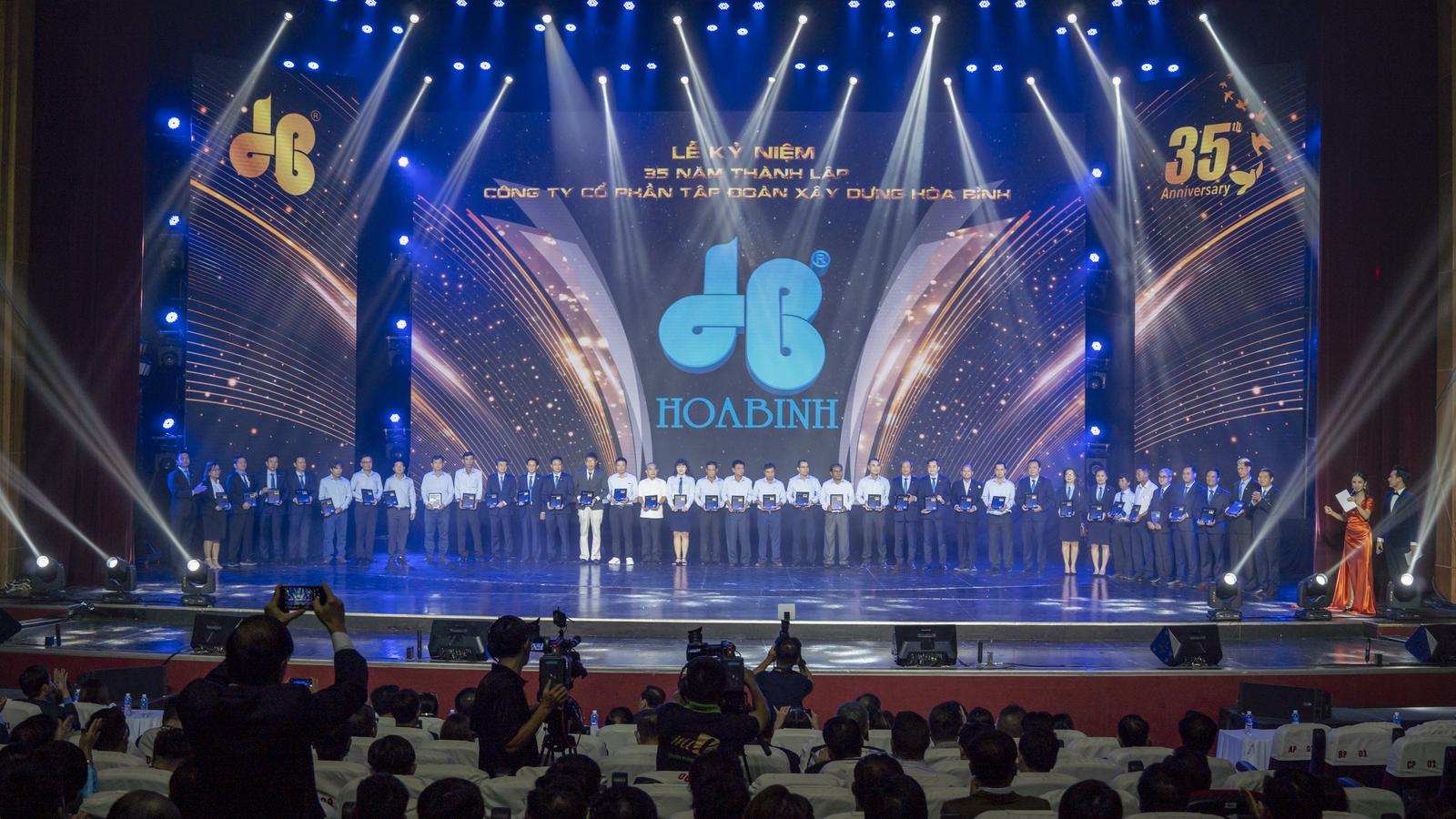 Sau 35 năm xây dựng và phát triển, Hòa Bình đã vươn lên đứng đầu Top 10 nhà thầu xây dựng uy tín Việt Nam từ con số 0. Các công trình do Hòa Bình thi công được phủ rộng tại 49/63 tỉnh thành trong cả nước và đã có mặt ở 2 quốc gia Malaysia và Myanmar. Hiện Tập đoàn Xây dựng Hòa Bình đang tạo công ăn việc làm cho gần 3.000 lao động. Làm việc tại Hòa Bình, CBCNV có được cơ hội và khuyến khích học tập nâng cao chuyên mô, kỹ năng mềm và làm việc trong một môi trường nhân văn, điều này đã được minh chứng qua kết quả khảo sát của Anphabe và Nielsen: Công ty Cổ phần Tập đoàn Xây dựng Hòa Bình 6 năm liền lọt Top 100 Nơi làm việc tốt nhất Việt Nam (từ 2016 - 2021). Đặc biệt, năm 2020 và 2021 Hòa Bình đứng Top 1 Nơi làm việc tốt nhất ngành Xây dựng và Kiến trúc. Trong ngày kỷ niệm này, Tập đoàn đã vinh danh trao kỷ niệm chương cho 46 CBCNV có thâm niên gắn bó 20 năm trở lên và tặng kỷ niệm chương cho 645 CBCNV thâm niên làm việc từ 10 năm trở lên.