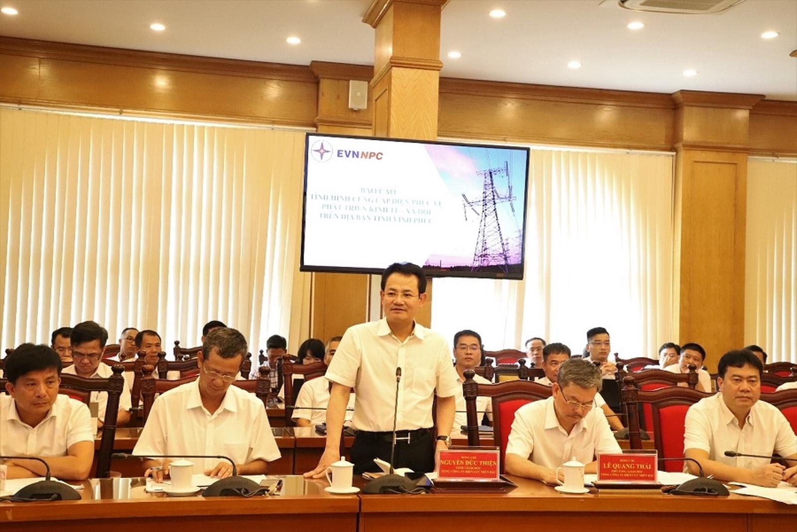 Ông Nguyễn Đức Thiện, Tổng Giám đốc EVNNPC nhận xét, trong thời gian qua trên địa bàn tỉnh Vĩnh Phúc có rất nhiều dự án trọng điểm bị vướng mắc, qua những ý kiến của các bên về thực trạng cung ứng điện hiện nay của Vĩnh Phúc, Tổng công ty Điện lực miền Bắc mong muốn sẽ nhận được chia sẻ và sự phối hợp của các cấp chính quyền trên địa bàn để đảm bảo cho tỉnh Vĩnh Phúc có một nguồn điện tốt nhất cũng như đảm bảo về an ninh và hệ thống điện có sự ổn định từ nguồn 500kV,220kV, 110kV đến nguồn điện quản lý tiêu dùng của nhân dân, đó là mục tiêu vì một hệ thống điện vững mạnh. Ông Thiện cũng tin tưởng rằng với kế hoạch và sự chỉ đạo bài bản về quy hoạch lưới đã được lãnh đạo tỉnh Vĩnh Phúc đề ra, cùng sự phối hợp chặt chẽ của Tổng công ty Điện lực miền Bắc và các đơn vị có liên quan, việc triển khai thúc đẩy tiến độ xây dựng các công trình lưới điện sẽ không còn những khó khăn và vướng mắc trong quá trình triển khai các dự án.
