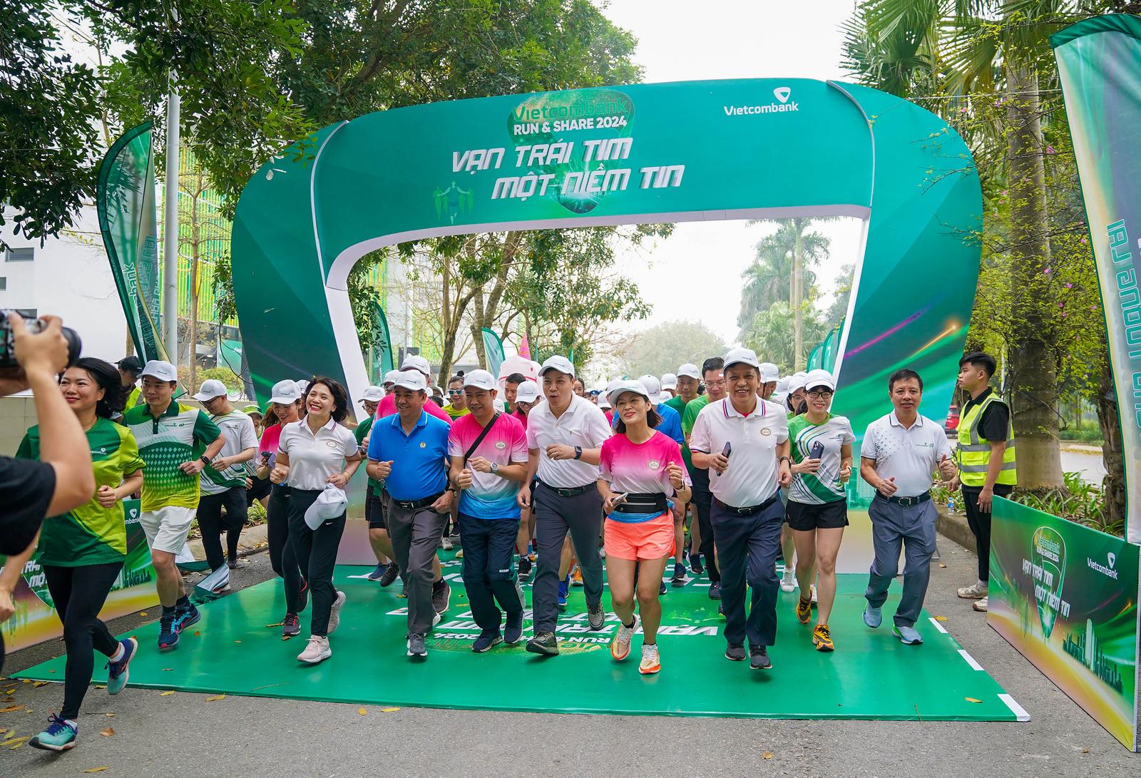 Giải chạy “Vietcombank Run & Share: Vạn trái tim - Một niềm tin” năm 2024 được tổ chức theo hình thức trực tuyến, ứng dụng công nghệ để nghi nhận kết quả online, với đối tượng tham gia là tất cả đoàn viên, người lao động tại Trụ sở chính, các chi nhánh, công ty trực thuộc trong toàn hệ thống Vietcombank và đoàn viên, người lao động của Cơ quan Ngân hàng Nhà nước Trung ương. Toàn bộ thành tích của vận động viên sẽ được Vietcombank quy đổi thành tiền để đóng góp vào quỹ “Vững tương lai”. Giải bắt đầu tính thành tích từ ngày 30/3/2024 đến hết ngày 20/4/2024. Mỗi km chạy hợp lệ của vận động viên, Vietcombank cam kết sẽ đóng góp số tiền tương ứng là 5.000 đồng cho quỹ “Vững tương lai” với mục tiêu gây quỹ năm 2024 dự kiến là 11 tỷ đồng.