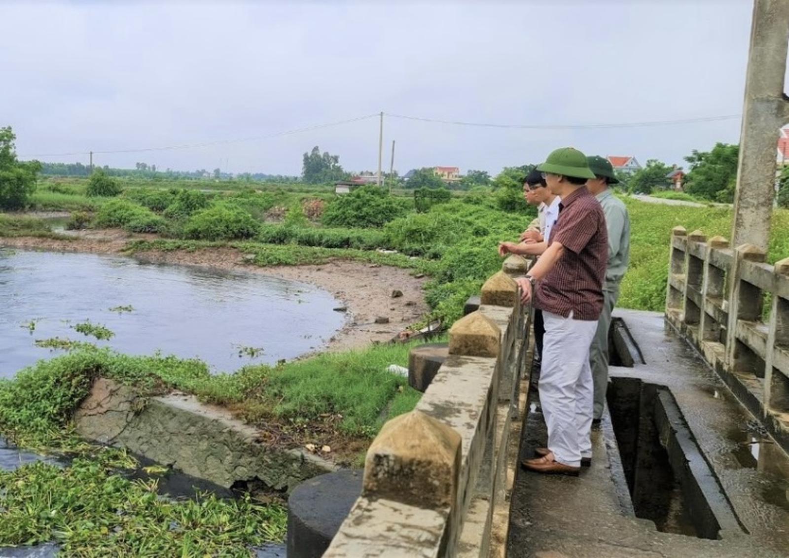 Ông Đặng Đình Tuấn, Giám đốc công ty cùng đoàn công tác đi kiểm tra công trình Cống Nguyễn chuẩn bị ứng phó với cơn bão số 2