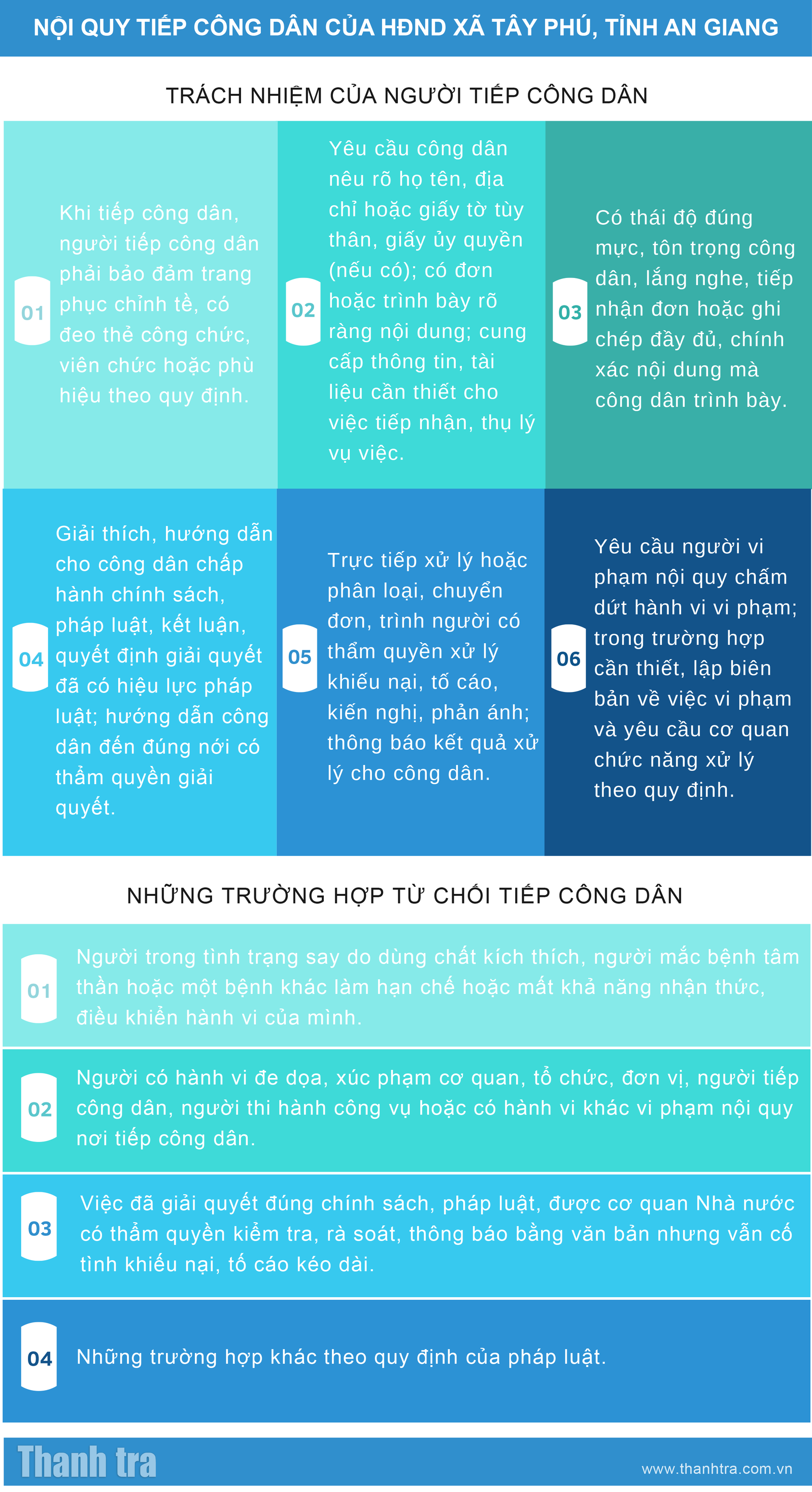 Theo lãnh đạo xã Tây Phú, việc ban hành nội quy tiếp công dân được căn cứ theo Luật Tổ chức chính quyền địa phương năm 2025, Luật Tiếp công dân năm 2013, Luật Khiếu nại năm năm 2011, Luật Tố cáo năm 2018, cùng các nghị định hướng dẫn thi hành.