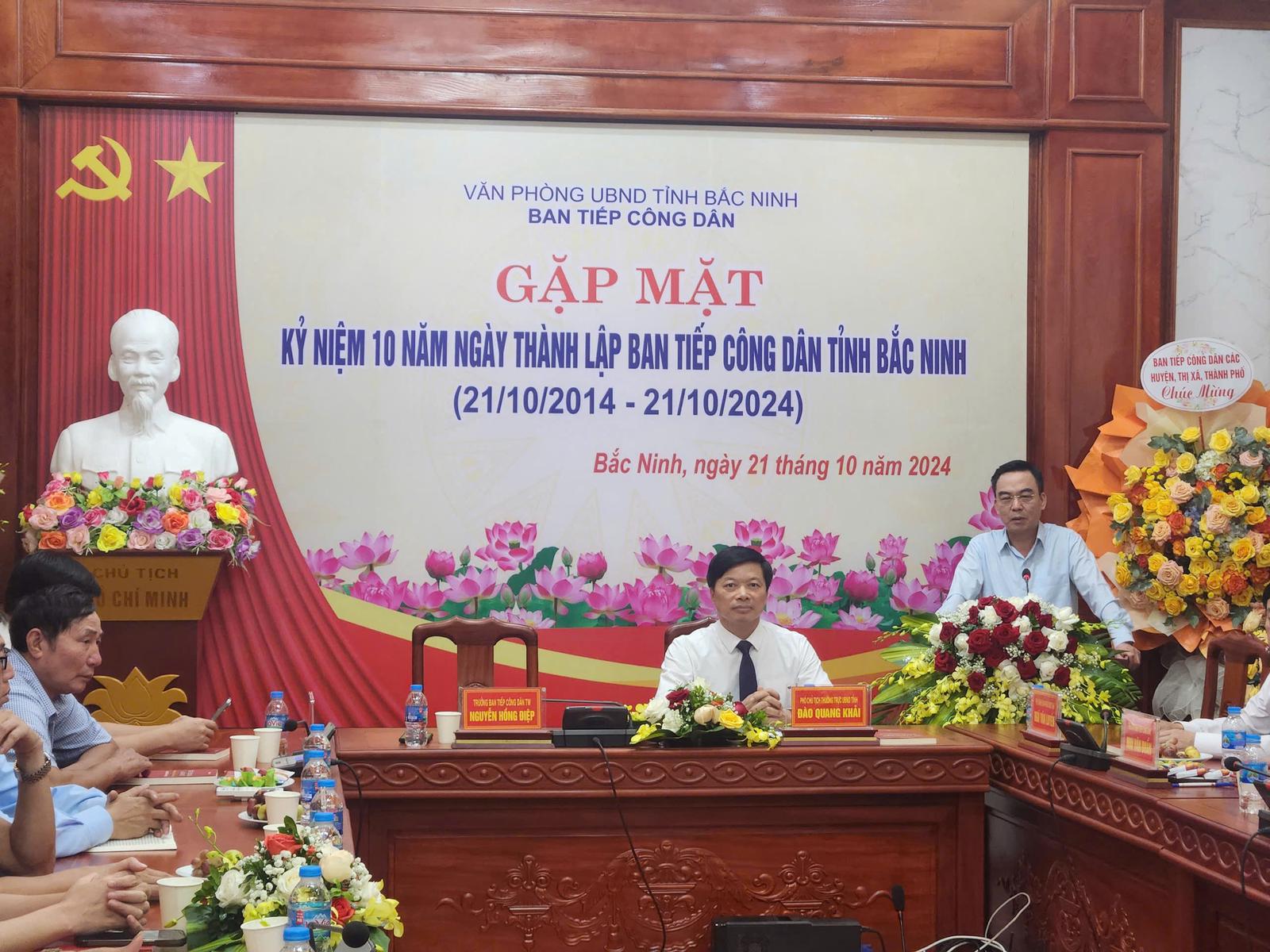 Phát biểu tại buổi lễ, Phó Chủ tịch Thường trực UBND tỉnh Đào Quang Khải cho biết, thời gian qua, tỉnh Bắc Ninh luôn quan tâm tới công tác tiếp công dân. Sự kiện kỷ niệm 10 năm ngày thành lập Ban Tiếp công dân tỉnh là dịp có ý nghĩa quan trọng để ôn lại truyền thống của các thế hệ người làm nhiệm vụ tiếp công dân.