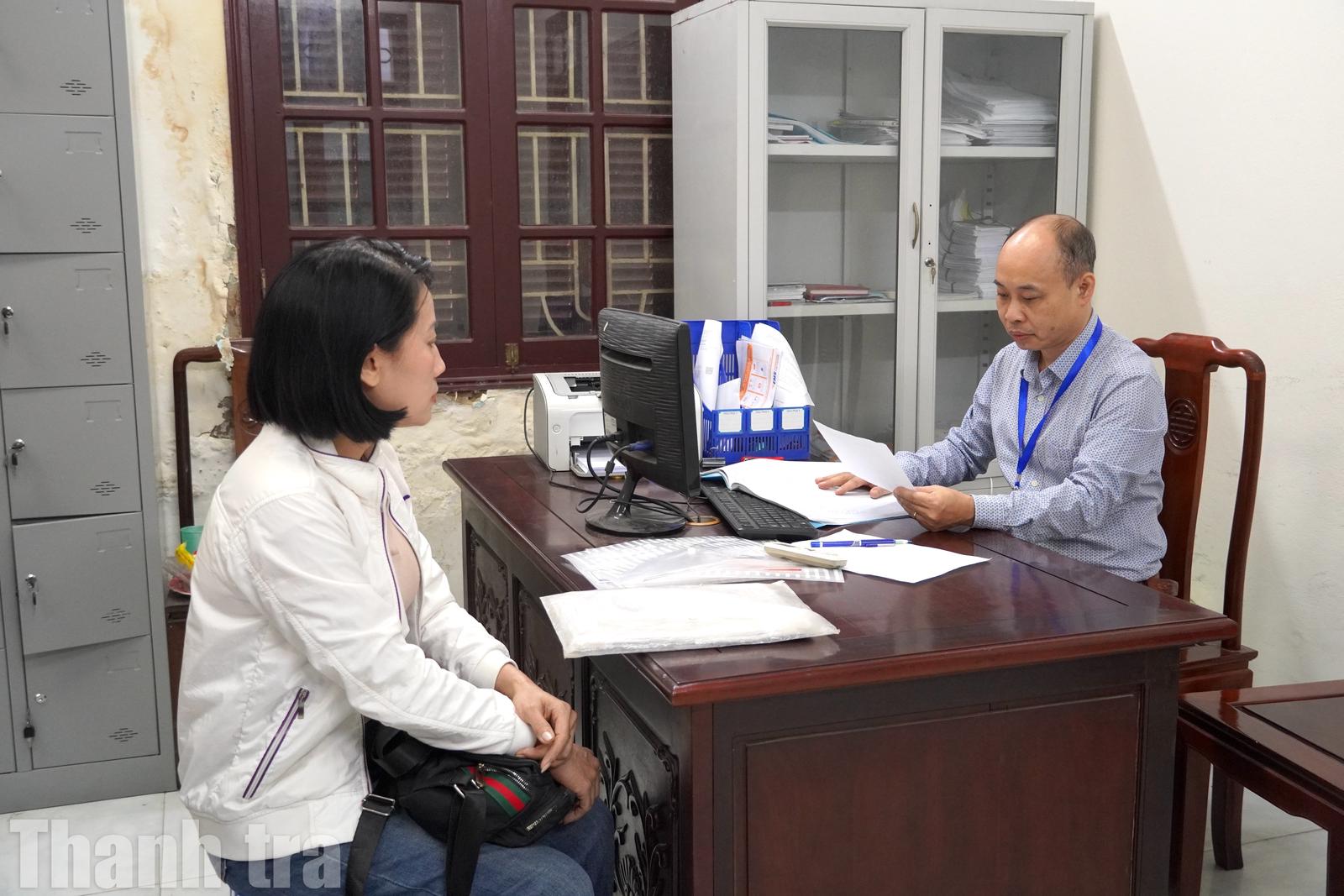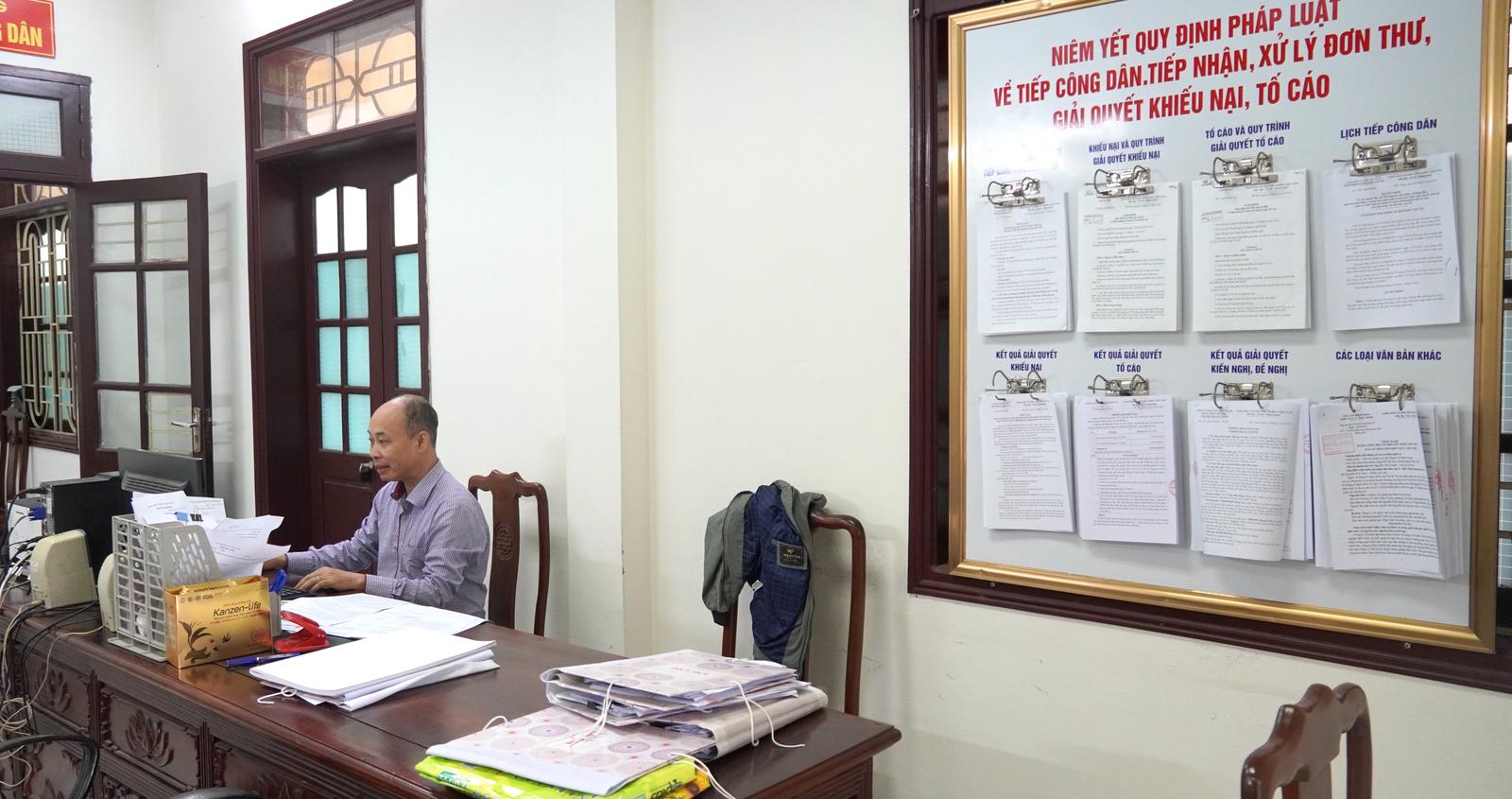 Cán bộ tiếp công dân đang làm thủ tục tiếp nhận đơn thư của công dân. Ảnh: Hoàng Long