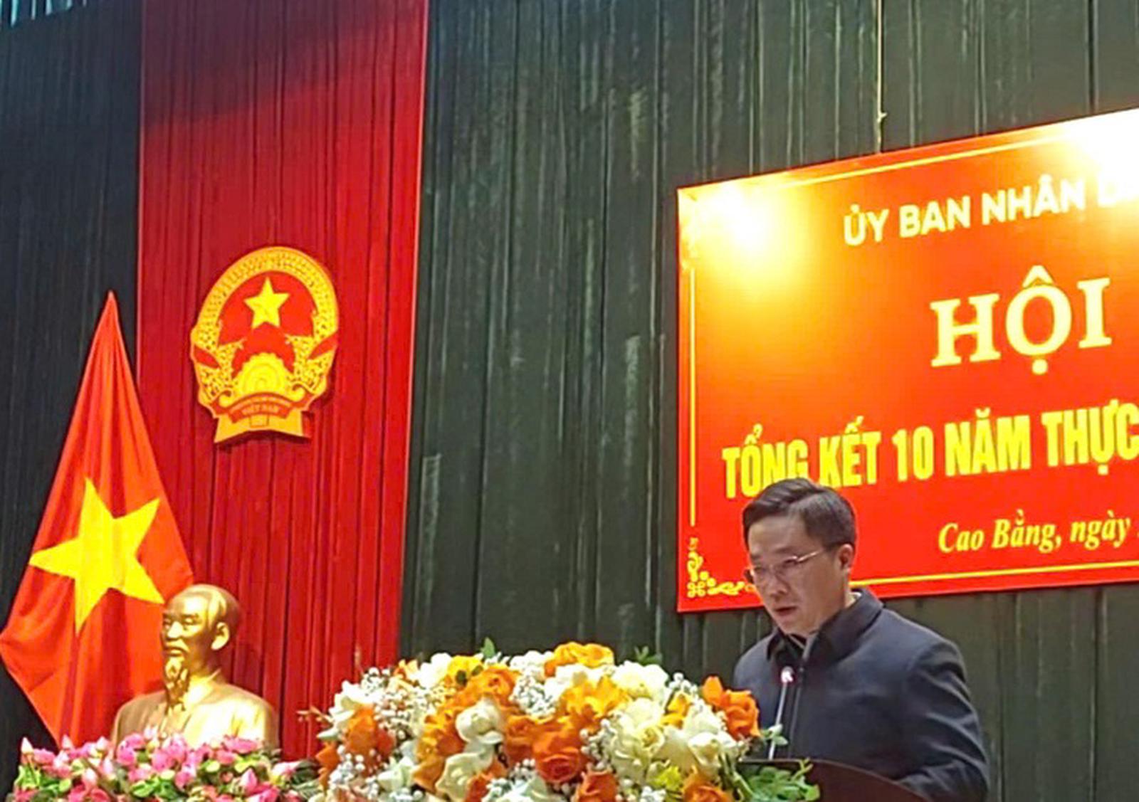 Ông Hoàng Xuân Ánh, Chủ tịch UBND tỉnh Cao Bằng phát biểu tại hội nghị. Ảnh: Trung Hà
