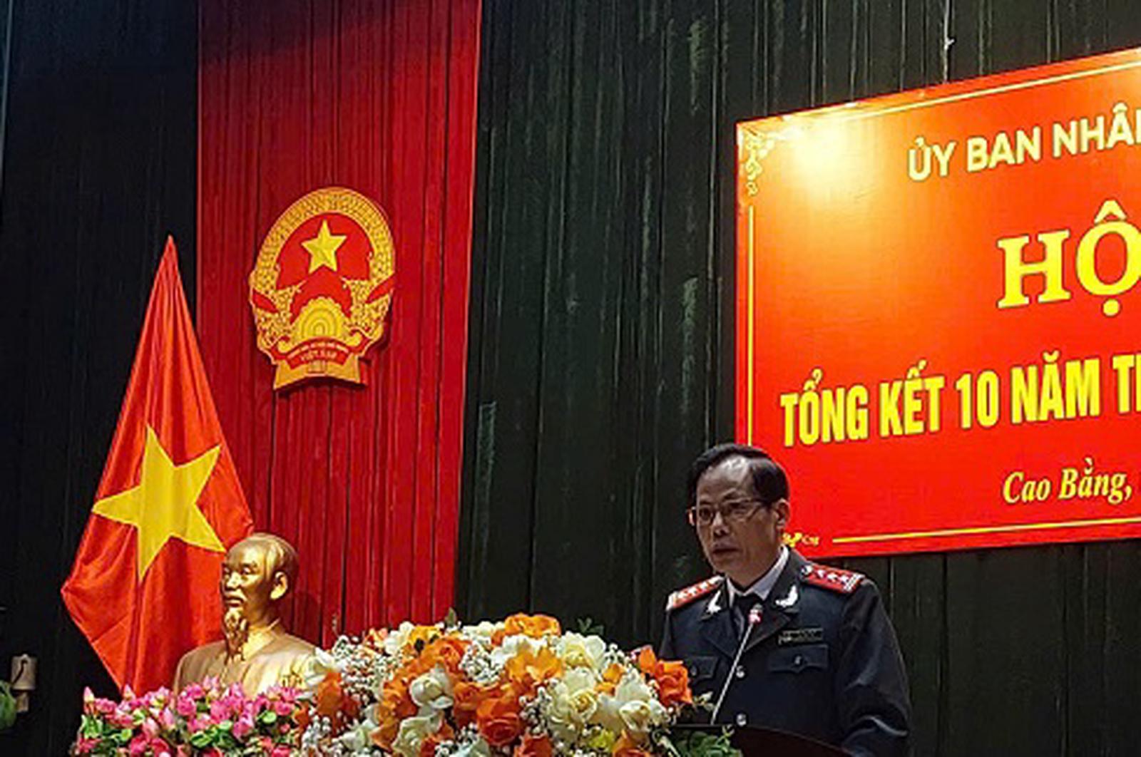 Ông Hứa Tân Hợi, Phó Chánh Thanh tra tỉnh Cao Bằng báo cáo tham luận tại hội nghị. Ảnh: Trung Hà