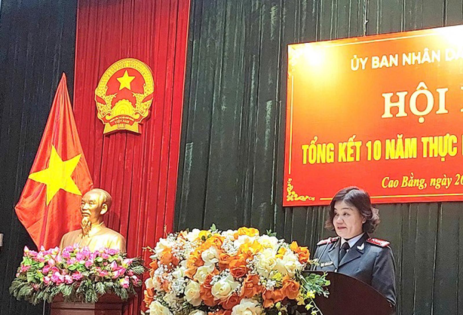 Bà Nguyễn Thị Ánh Hồng, Chánh Thanh tra tỉnh Cao Bằng phát biểu tại hội nghị. Ảnh: Trung Hà
