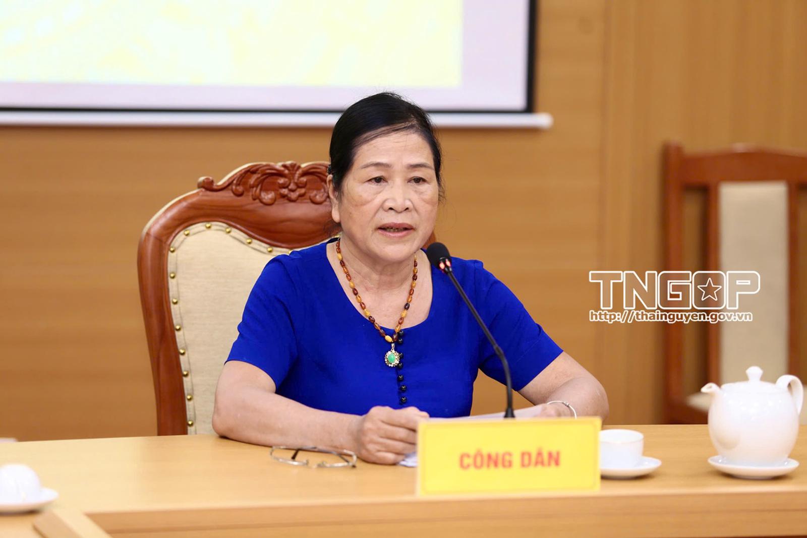 Tại buổi tiếp, công dân Toàn Thị Yên, sinh năm 1959, là giáo viên nghỉ hưu, hiện đang cư trú tại tổ dân phố Trung Hòa, xã Đại Phúc, tỉnh Thái Nguyên trình bày tâm tư, nguyện vọng của bản thân.
