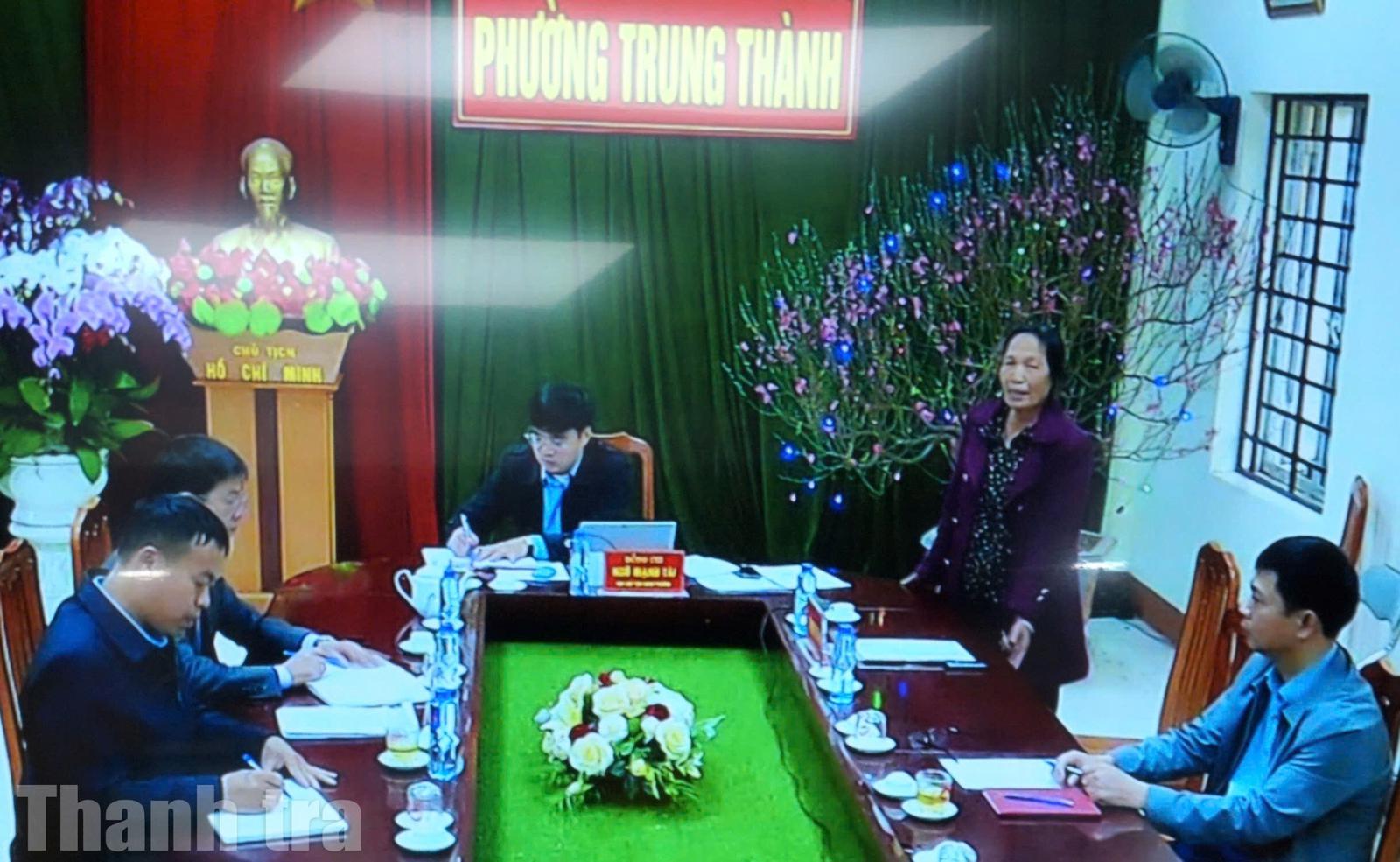 Công dân nêu kiến nghị qua hình thức trực tuyến từ trụ sở UBND phường Trung Thành. Ảnh: TM