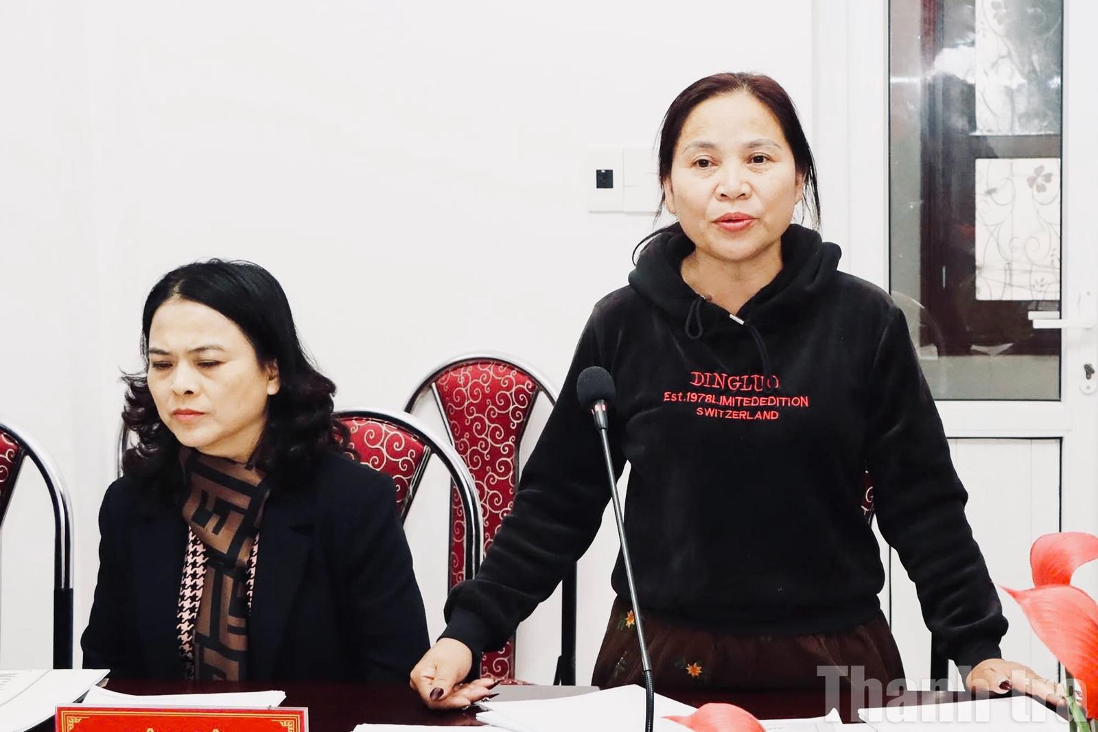 Công dân Phạm Thị Khanh phát biểu nêu kiến nghị tại buổi tiếp. Ảnh: ND