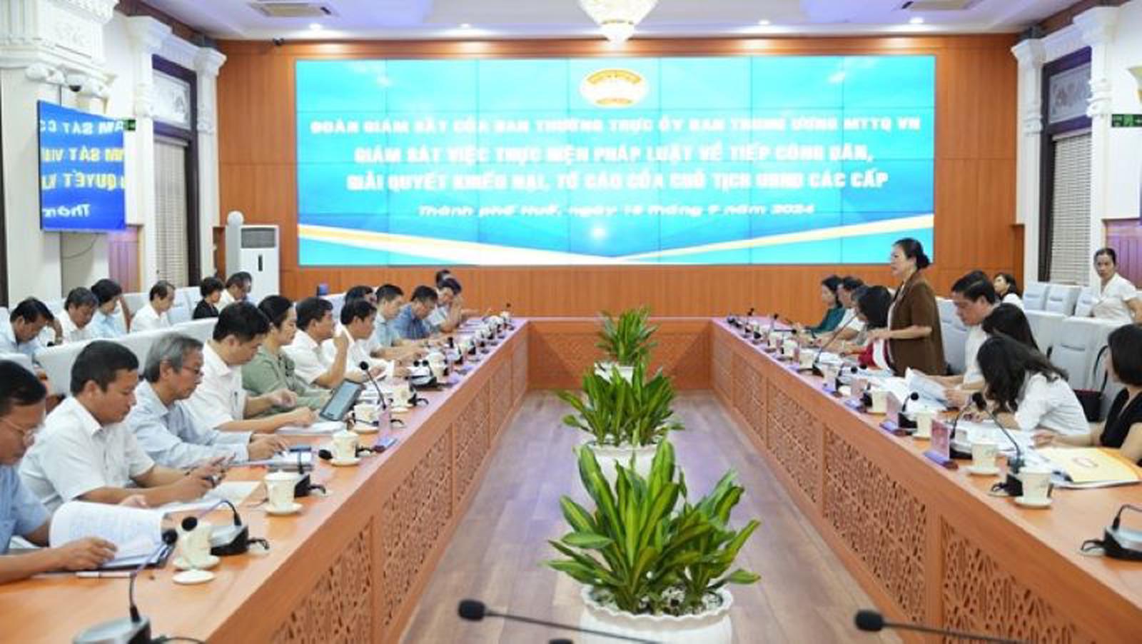 (Thanh tra) - Hôm nay (18/9), tại buổi làm việc với tỉnh Thừa Thiên - Huế về việc thực hiện pháp luật về tiếp công dân, giải quyết khiếu nại, tố cáo (KNTC) của chủ tịch UBND các cấp, đoàn giám sát của Mặt trận Tổ quốc (MTTQ) Việt Nam đã đề nghị tỉnh tiếp tục triển khai thực hiện nghiêm túc, có hiệu quả các quy định trong công tác tiếp công dân, giải quyết KNTC.