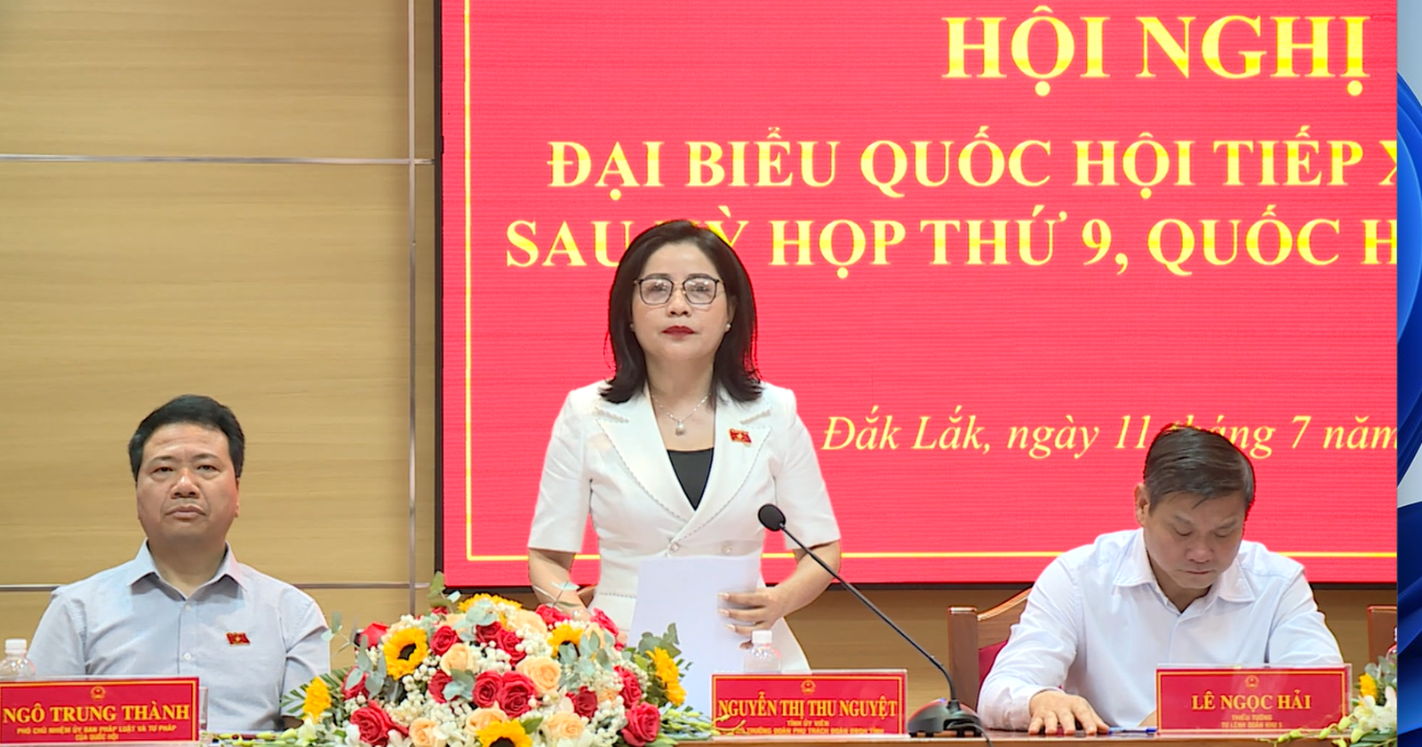 Phát biểu tại hội nghị, bà Nguyễn Thị Thu Nguyệt, Phó Trưởng đoàn phụ trách Đoàn ĐBQH tỉnh Đắk Lắk cảm ơn những ý kiến tâm huyết, thiết thực của cử tri. Bà nhấn mạnh tầm quan trọng của hội nghị trong bối cảnh Đắk Lắk đang triển khai Nghị quyết của Ủy ban Thường vụ Quốc hội về sáp nhập đơn vị hành chính và tinh gọn bộ máy chính quyền. Bà mong muốn cử tri tiếp tục đồng hành cùng chính quyền tỉnh để thực hiện tốt nhiệm vụ trong giai đoạn mới.