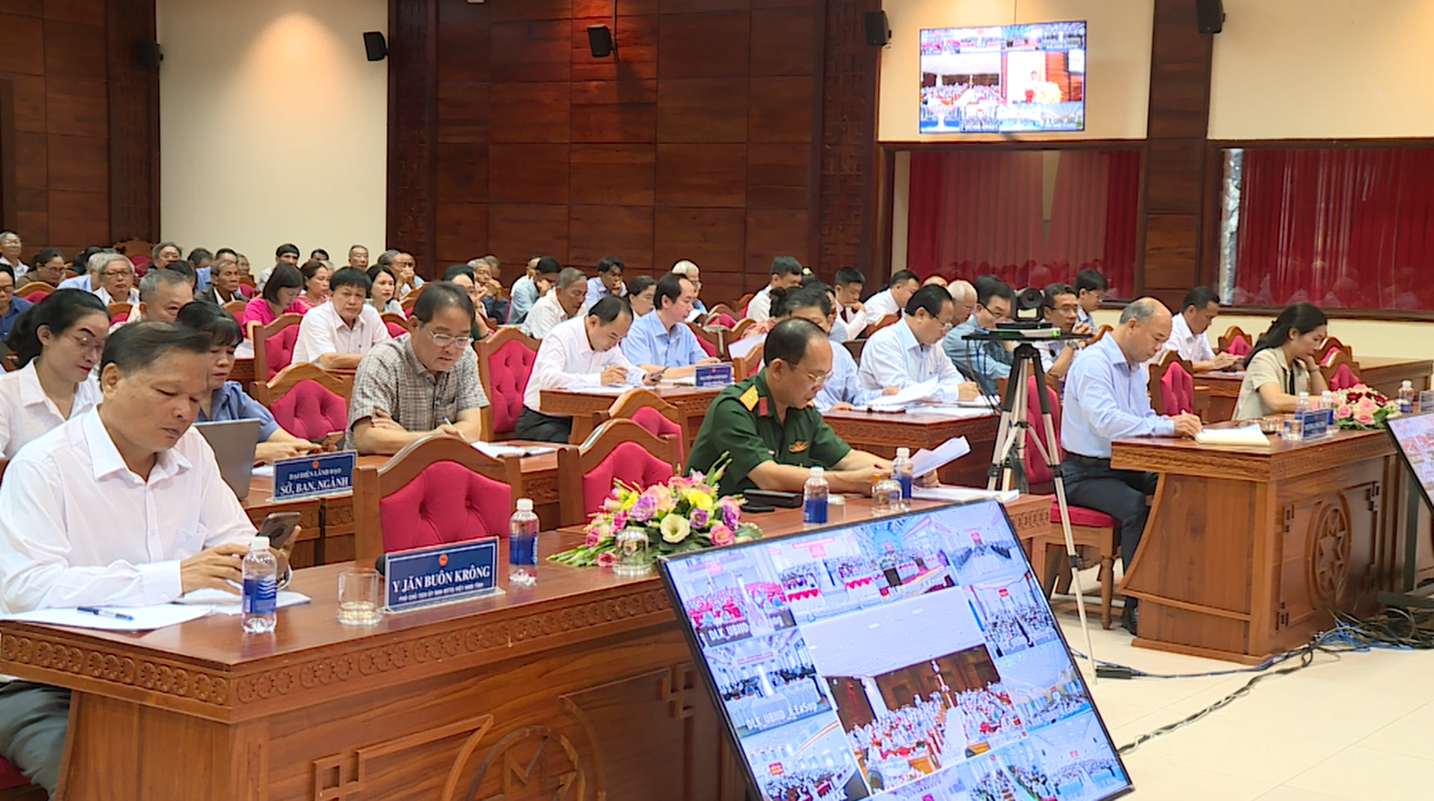 Tham dự tại điểm cầu chính có bà Nguyễn Thị Thu Nguyệt, Phó Trưởng đoàn phụ trách Đoàn ĐBQH tỉnh Đắk Lắk; ông Trương Công Thái, Phó Chủ tịch UBND tỉnh Đắk Lắk, cùng các vị ĐBQH khóa XV ứng cử tại tỉnh và đại diện lãnh đạo các sở, ngành liên quan.