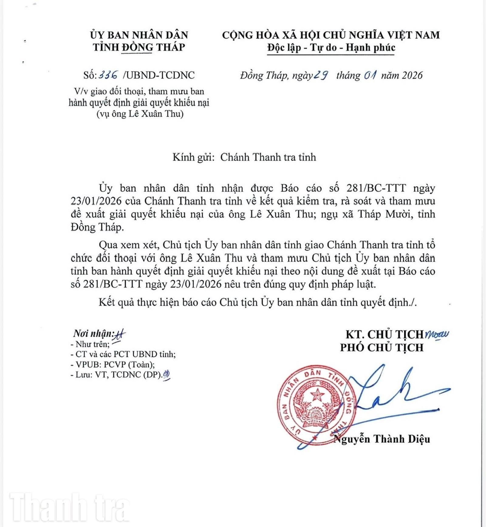 Theo Thanh tra tỉnh Đồng Tháp, riêng trong tháng 1/2026, đơn vị đã tham mưu, trình UBND tỉnh ban hành trên 20 văn bản thông báo về việc chấm dứt việc tiếp nhận, thụ lý, giải quyết khiếu nại của các công dân. Đây là kết quả của một quá trình dài rà soát kỹ lưỡng hồ sơ các vụ việc; tổ chức đối thoại với công dân theo đúng trình tự, qui định của pháp luật.