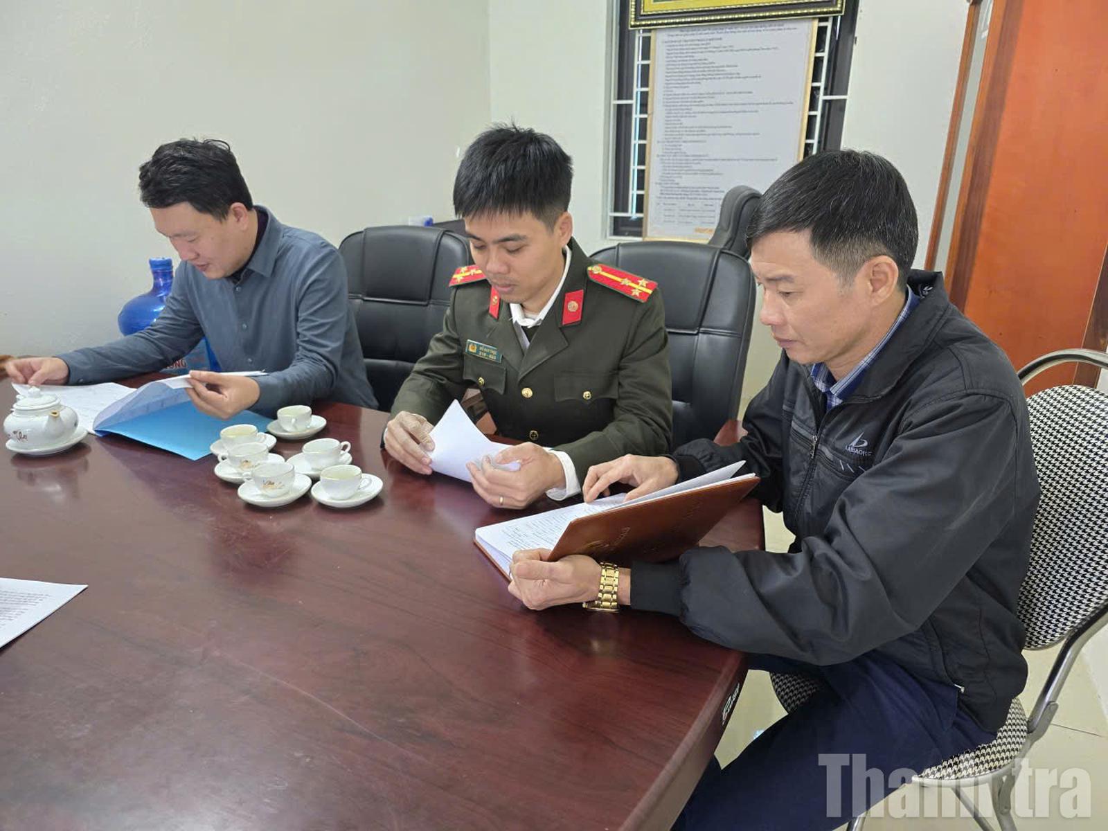 Cán bộ xã Xuân Lập trao đổi công việc về đảm bảo an ninh trật tự chuẩn bị cho Đại hội Đảng toàn quốc lần thứ XIV và công tác tiếp dân trên địa bàn. Ảnh: Văn Thanh