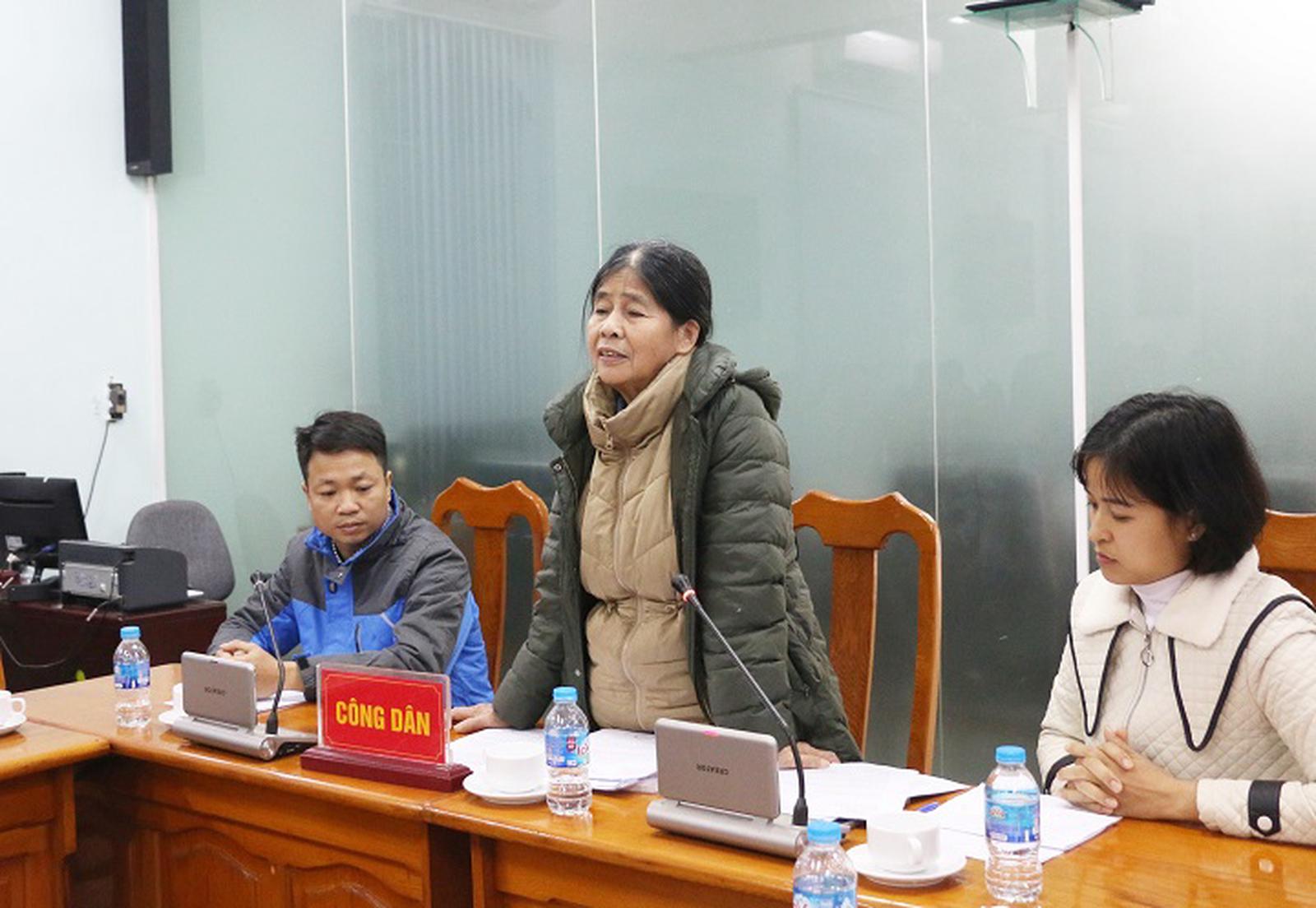 Công dân Hà Thị Bé trình bày nội dung khiếu nại tại buổi tiếp công dân. Ảnh: Lê Huệ