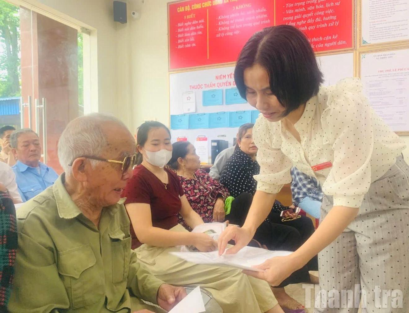 Cán bộ tiếp dân ở Thanh Hóa thực hiện hướng dẫn thủ tục hành chính cho người già. Ảnh: Văn Thanh