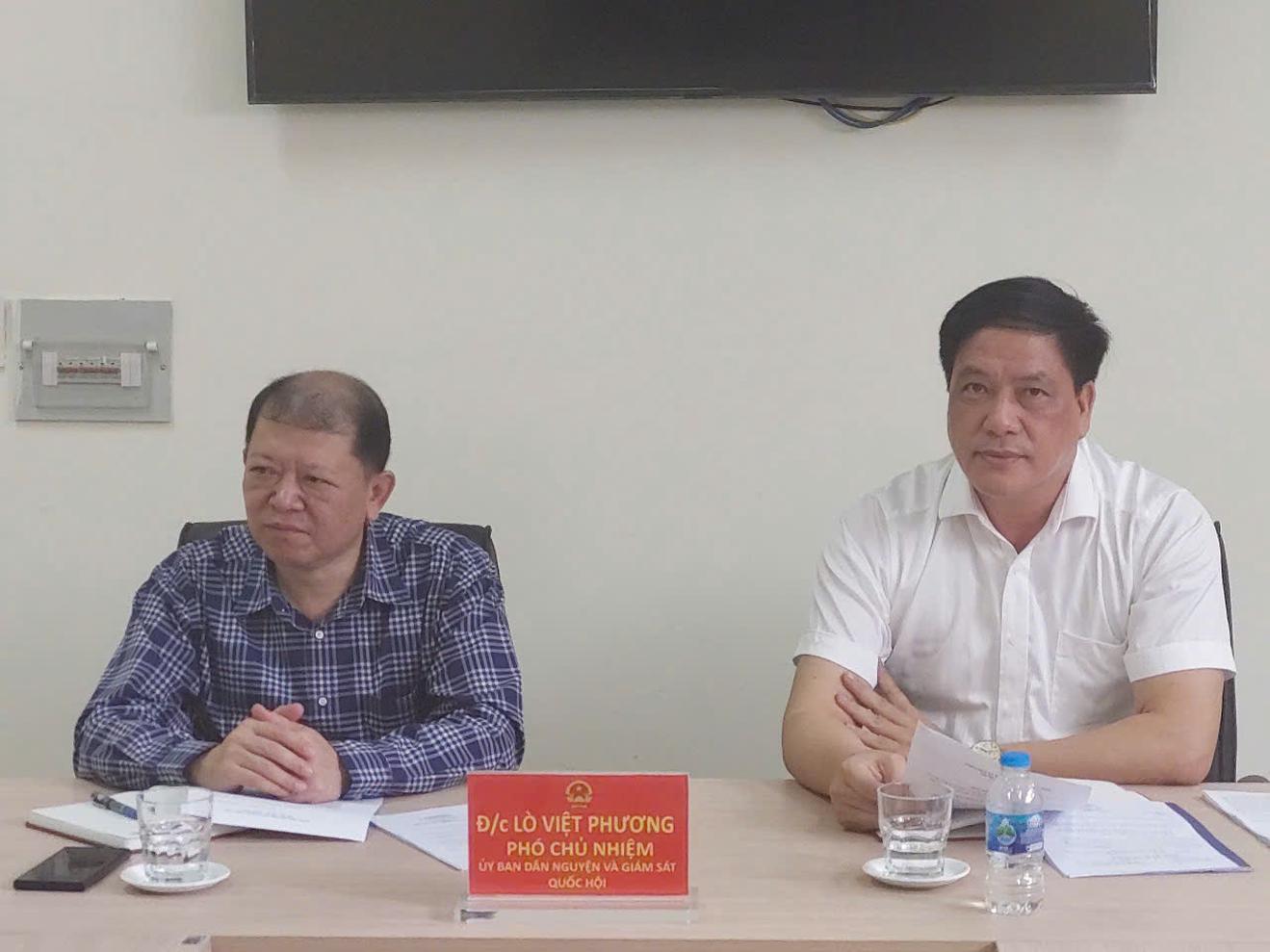 Phó Chủ nhiệm Ủy ban Dân nguyện và Giám sát của Quốc hội - Lò Việt Phương và ông Trần Hồng Cẩn lắng nghe trình bày của công dân. Ảnh: Đình Thuyết