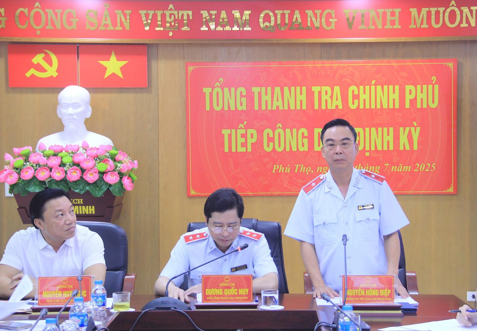 Phát biểu kết luận hội nghị TCD, Phó Tổng Thanh tra Chính phủ Dương Quốc Huy thay mặt cho lãnh đạo Thanh tra Chính phủ, ghi nhận và biểu dương tinh thần nghiêm túc, phối hợp của UBND tỉnh Phú Thọ và các sở, ngành, cơ quan liên quan khi cùng với Thanh tra Chính phủ tổ chức tốt buổi TCD định kỳ tháng 7/2025 của Tổng Thanh tra Chính phủ.