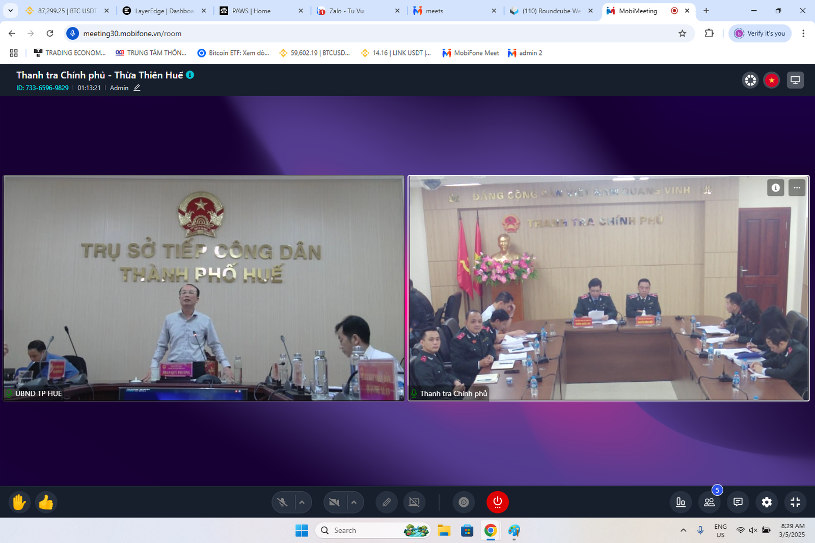 Tiếp công dân kết nối trực tuyến giữa Trụ sở Tiếp công dân Trung ương và điểm cầu Trụ sở Tiếp công dân thành phố Huế. Ảnh: TH
