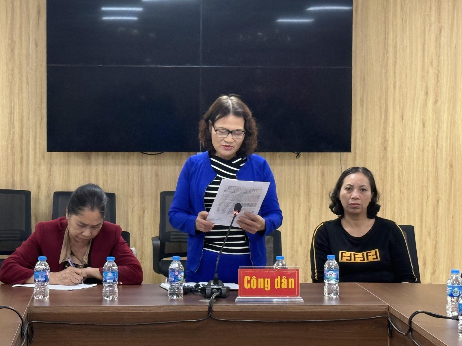 Đại diện cho khoảng 300 hộ dân có đất dịch vụ và đất tái định cư tại phường Phúc La, quận Hà Đông, thành phố Hà Nội trình bày vụ việc. Ảnh: TH