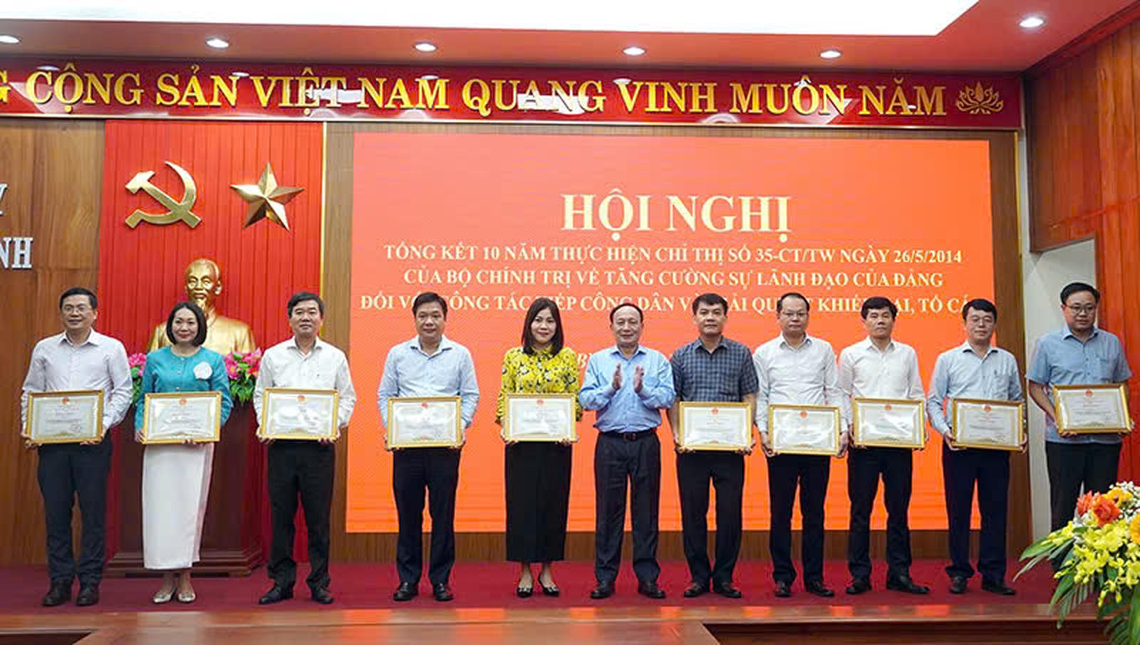 Thứ nhất, các cấp, các ngành đã tổ chức triển khai, tuyên truyền, quán triệt và thực hiện nghiêm túc Chỉ thị số 35-CT/TW của Bộ Chính trị, các chủ trương của Đảng và pháp luật của Nhà nước về công tác TCD, giải quyết KNTC. Trong 10 năm, các cơ quan hành chính Nhà nước đã ban hành 445 văn bản chỉ đạo và tổ chức 358 lớp tập huấn, tuyên truyền, phổ biến pháp luật về công tác TCD, giải quyết KNTC với trên 39.000 lượt người tham gia.