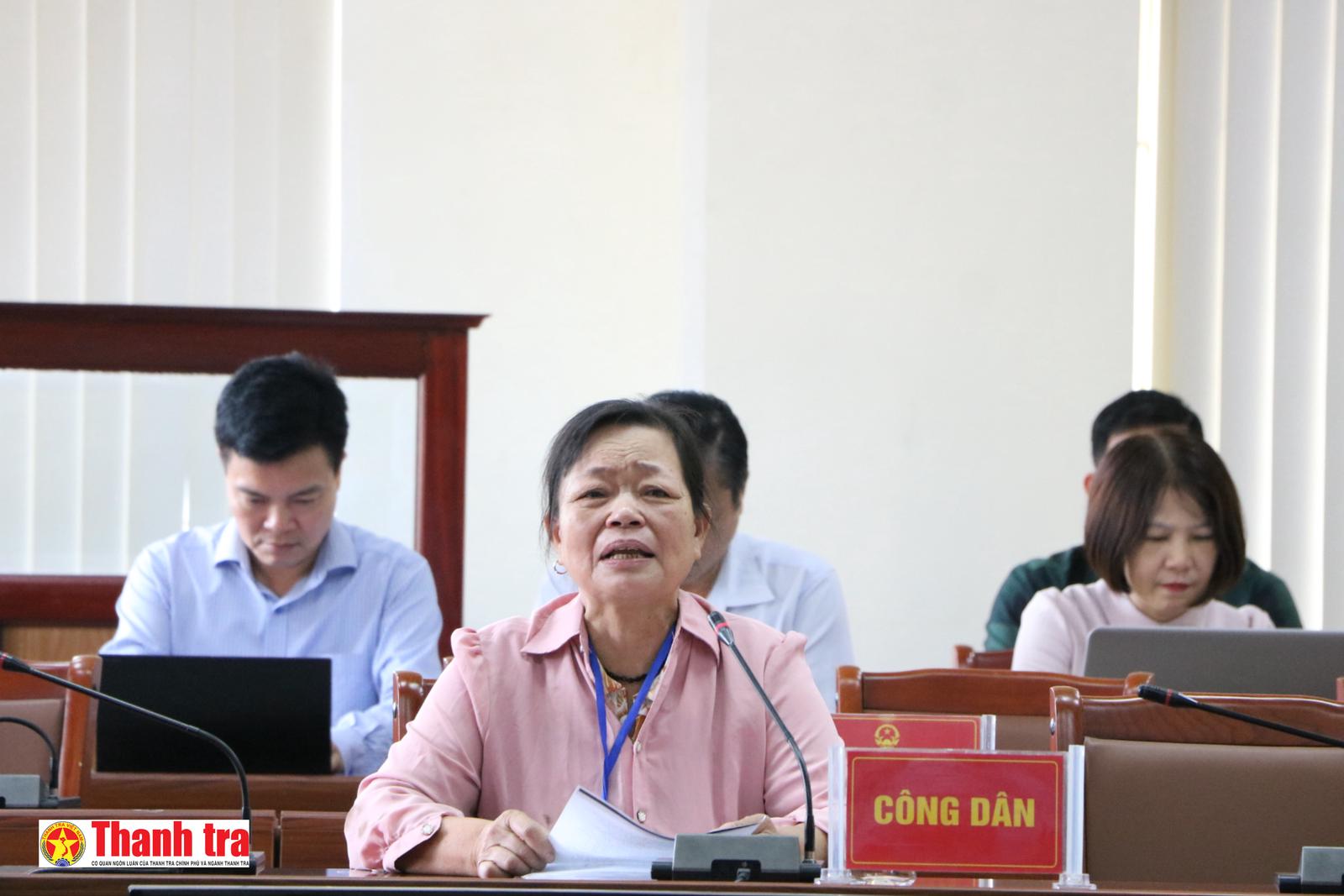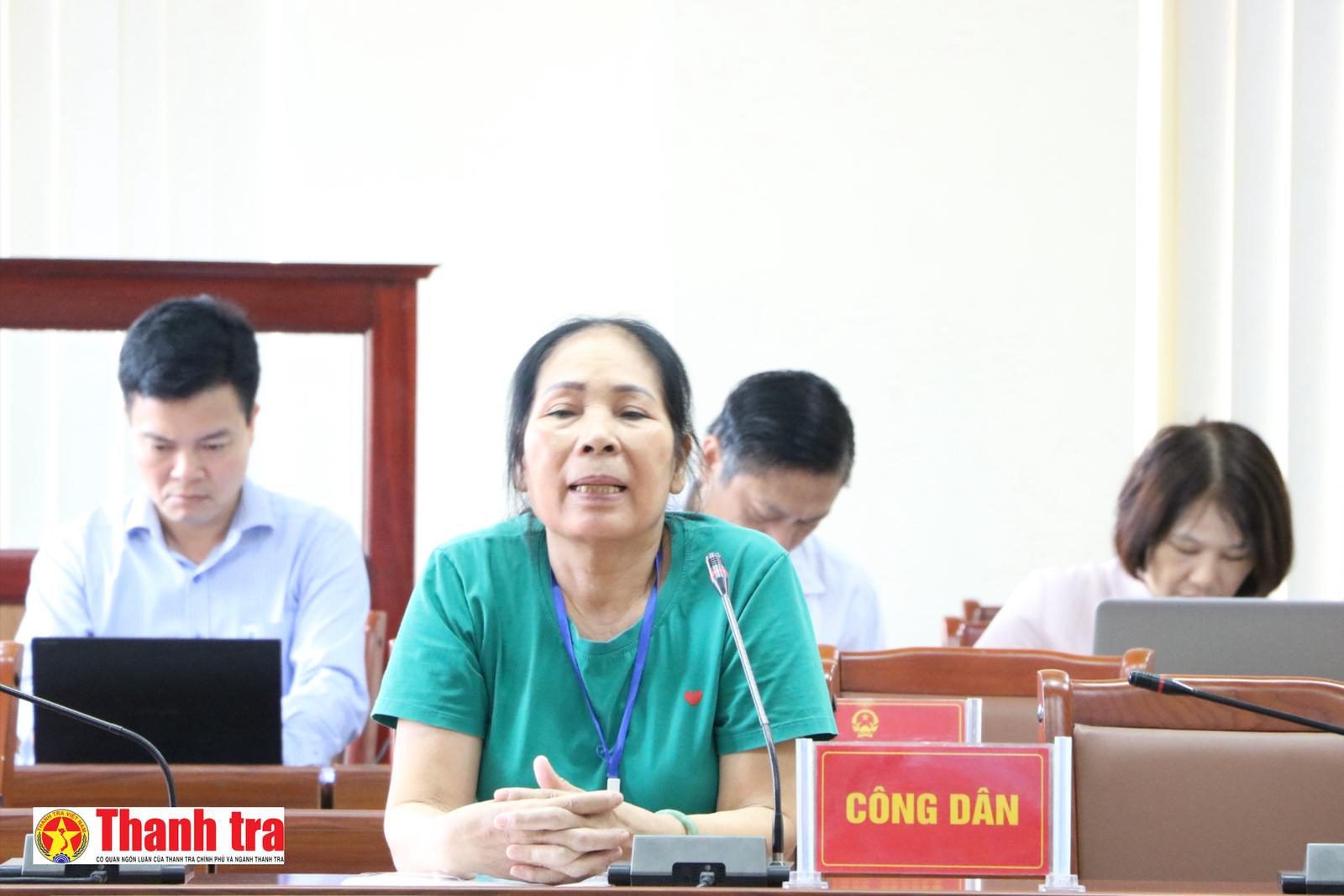 Bà Đinh Thị Xá, đại diện Công ty Dương Nhật, cho rằng UBND TP Cẩm Phả (cũ) thu hồi đất làm dự án nhưng bồi thường, hỗ trợ chưa thỏa đáng. Ảnh: Hoàng Hưng