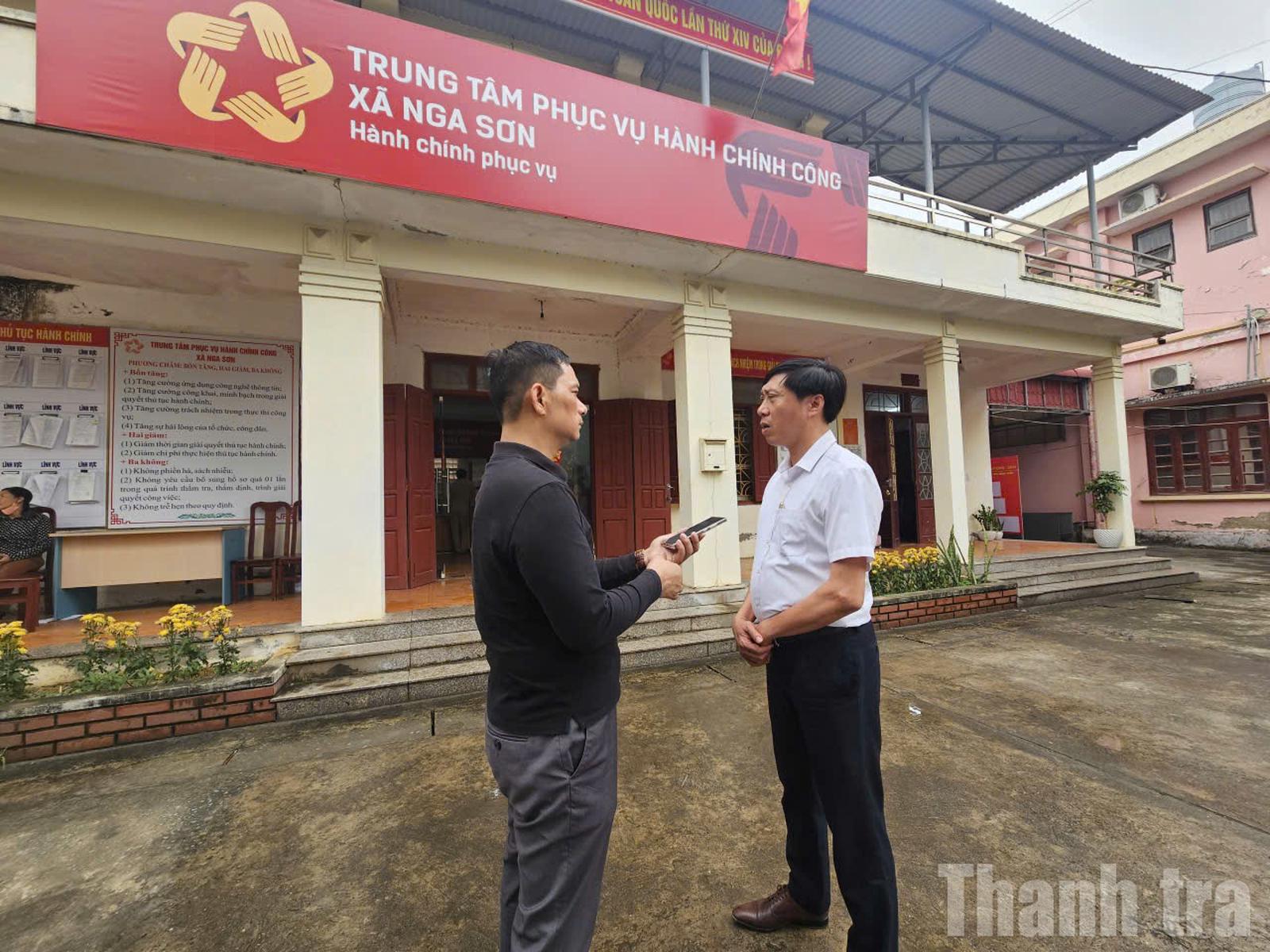 Phó Chủ tịch UBND xã Nga Sơn Nguyễn Văn Dũng (phải ảnh) trao đổi với phóng viên Báo Thanh tra. Ảnh: Văn Thanh