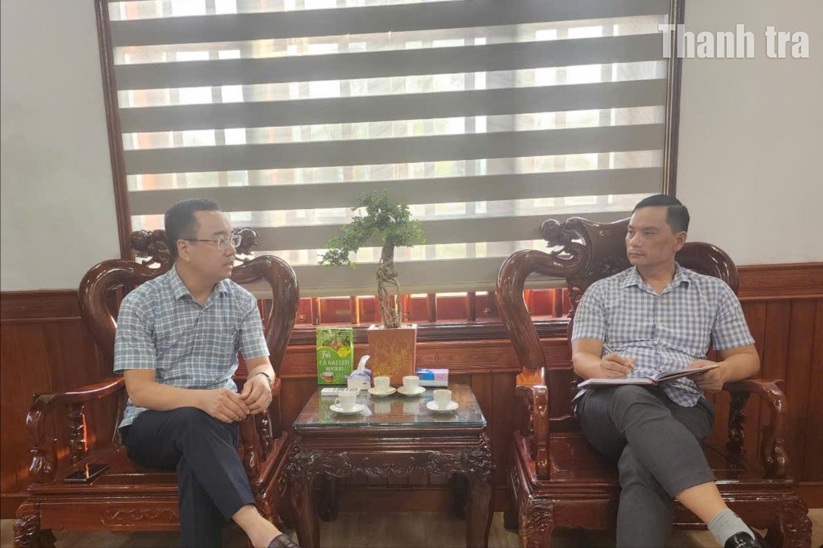 Ông Đỗ Trí Hòa, Chủ tịch UBND xã Lưu Vệ (trái ảnh) trao đổi với phóng viên Báo Thanh tra. Ảnh: Văn Thanh