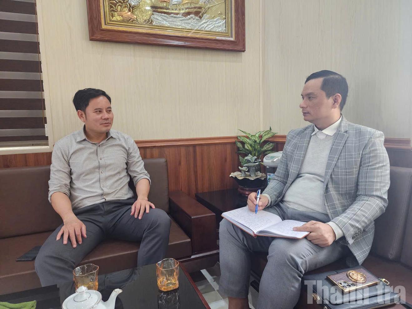 Ông Nguyễn Quốc Tuấn, Chủ tịch UBND xã Sao Vàng (trái ảnh) trao đổi với phóng viên Báo Thanh tra. Ảnh: Văn Thanh