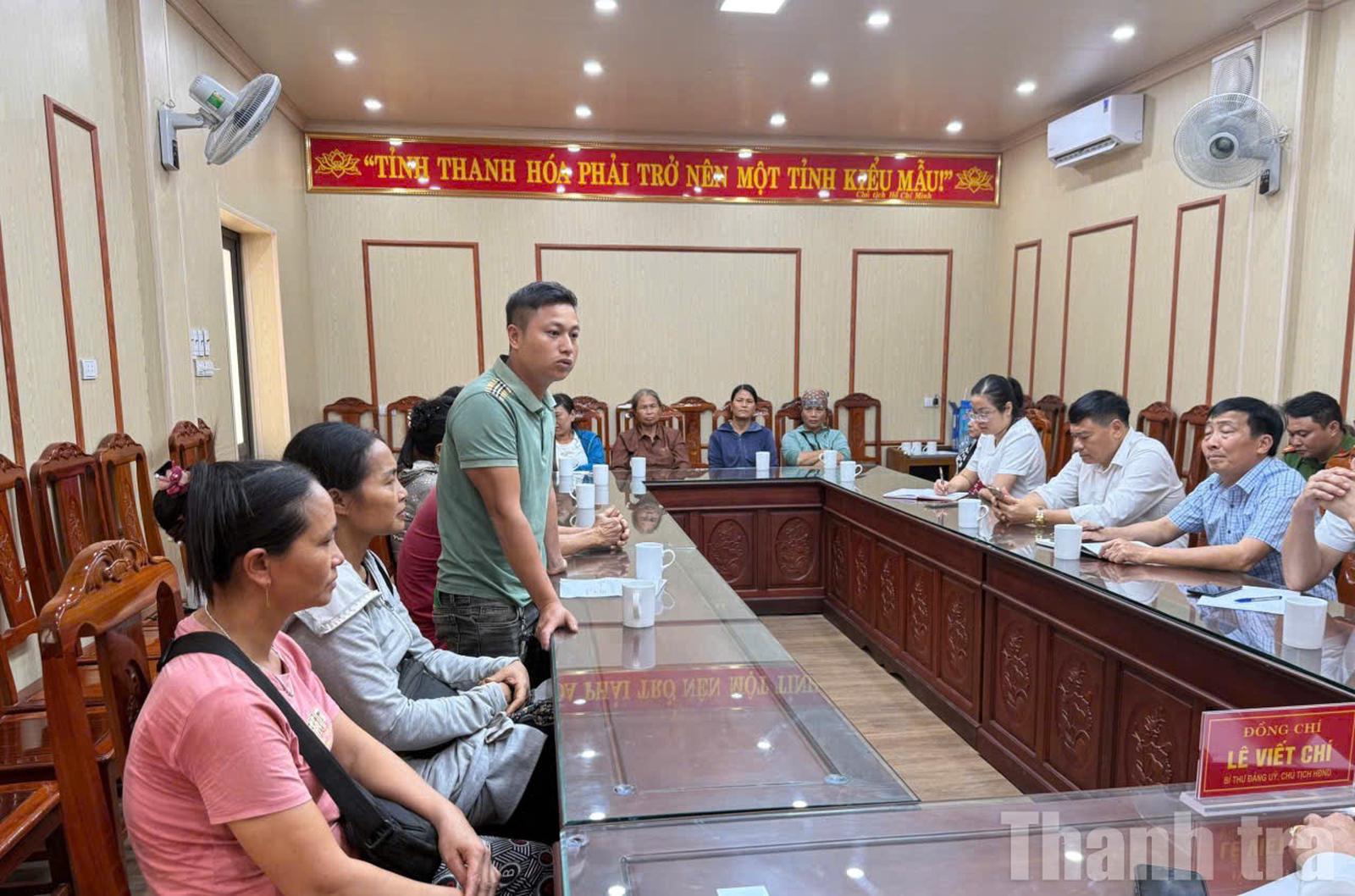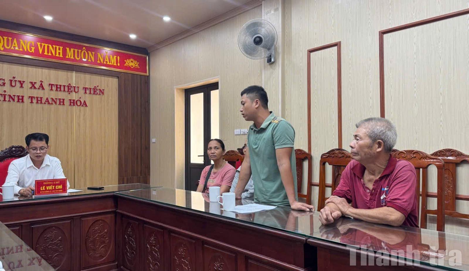 Công dân xã Thiệu Tiến trình bày những kiến nghị của mình tại buổi tiếp công dân và Bí thư Đảng ủy xã lắng nghe, nắm bắt để giải quyết dứt điểm vụ việc. Ảnh: Văn Thanh
