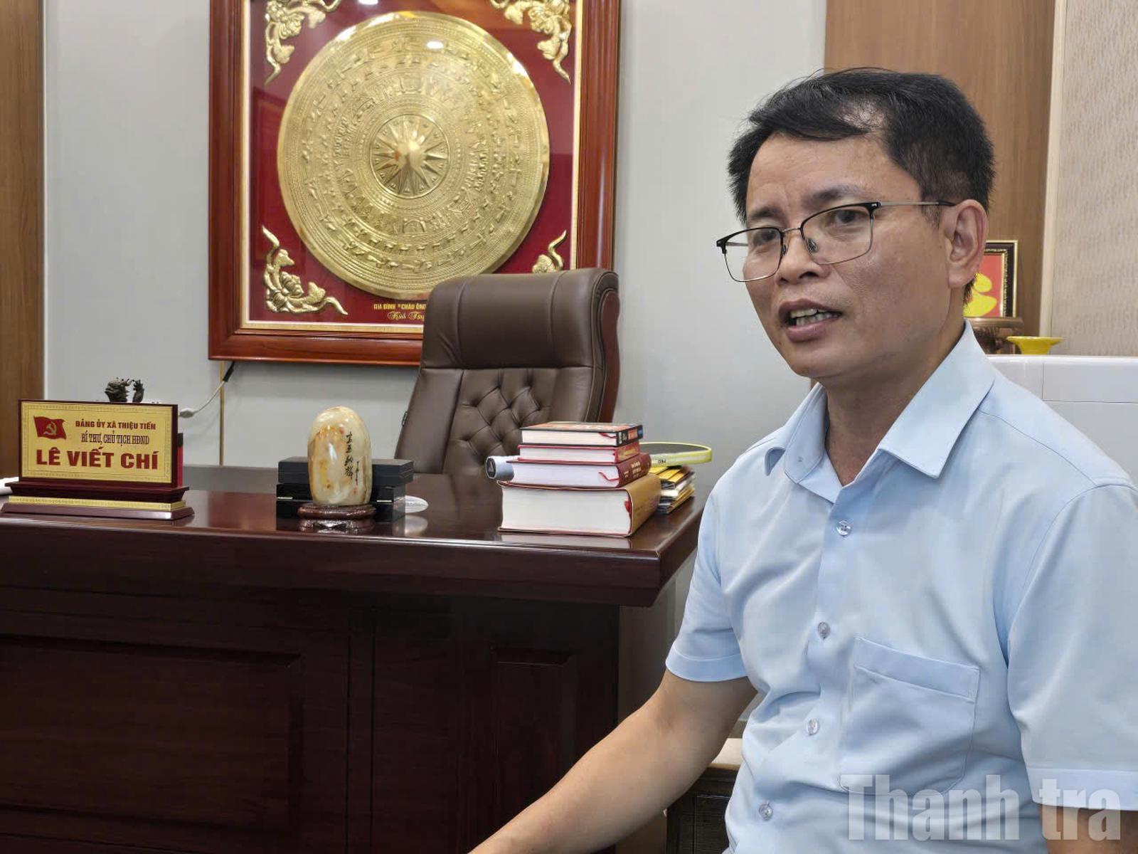 Ông Lê Viết Chí, Bí thư Đảng ủy, Chủ tịch HĐND xã Thiệu Tiến chia sẻ công tác tiếp dân, giải quyết khiếu nại, tố cáo với phóng viên. Ảnh: Văn Thanh