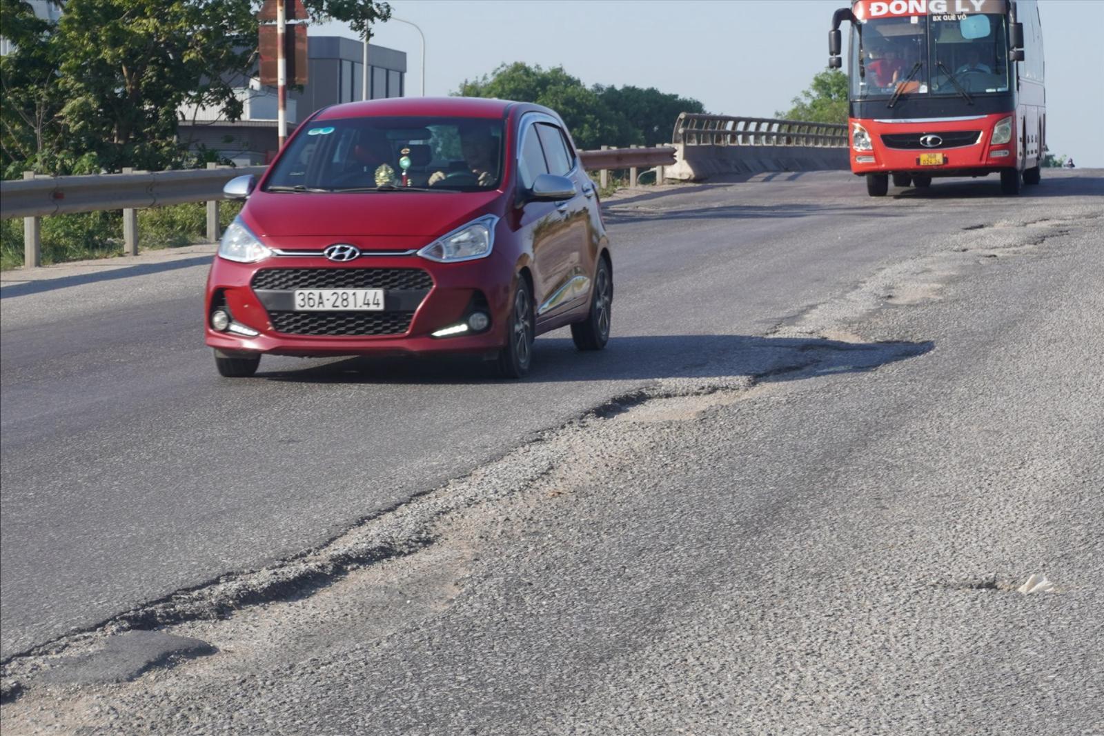 Tuyến đường tránh phía Đông TP Thanh Hóa xuống cấp do chưa được chuyển giao. Ảnh: GT