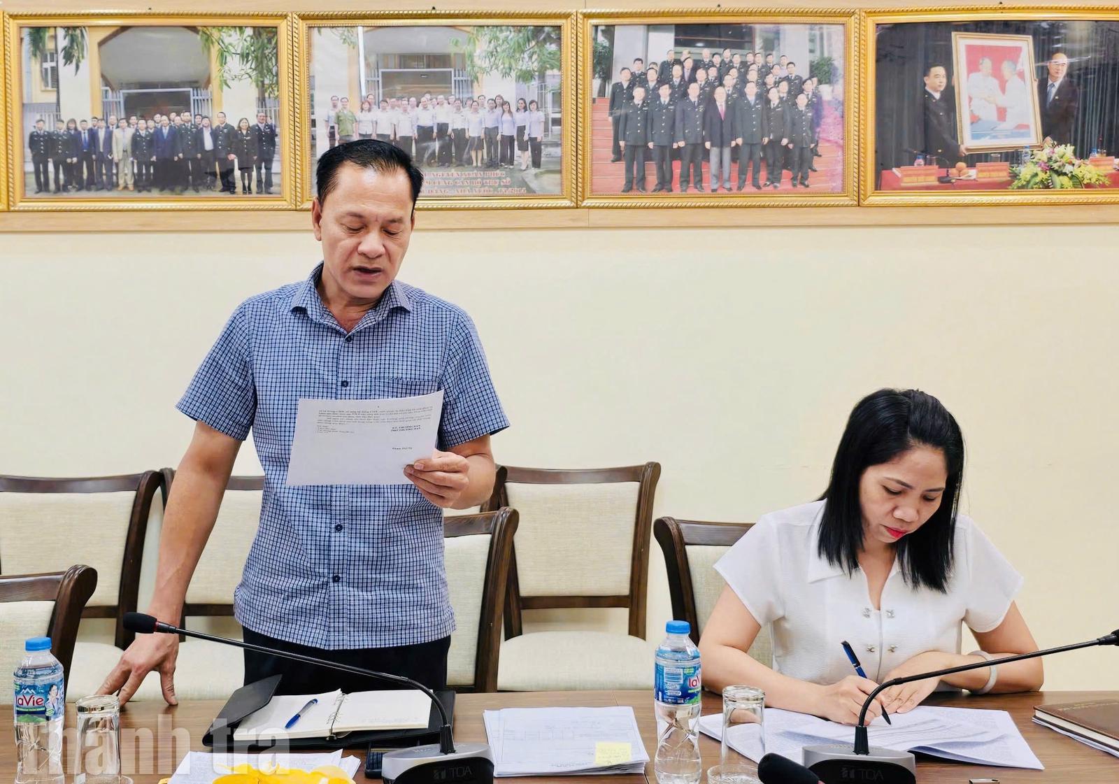 Ông Lê Hải Đăng, Trưởng phòng Tổng hợp trình bày báo cáo tại cuộc họp. Ảnh: Lan Anh.