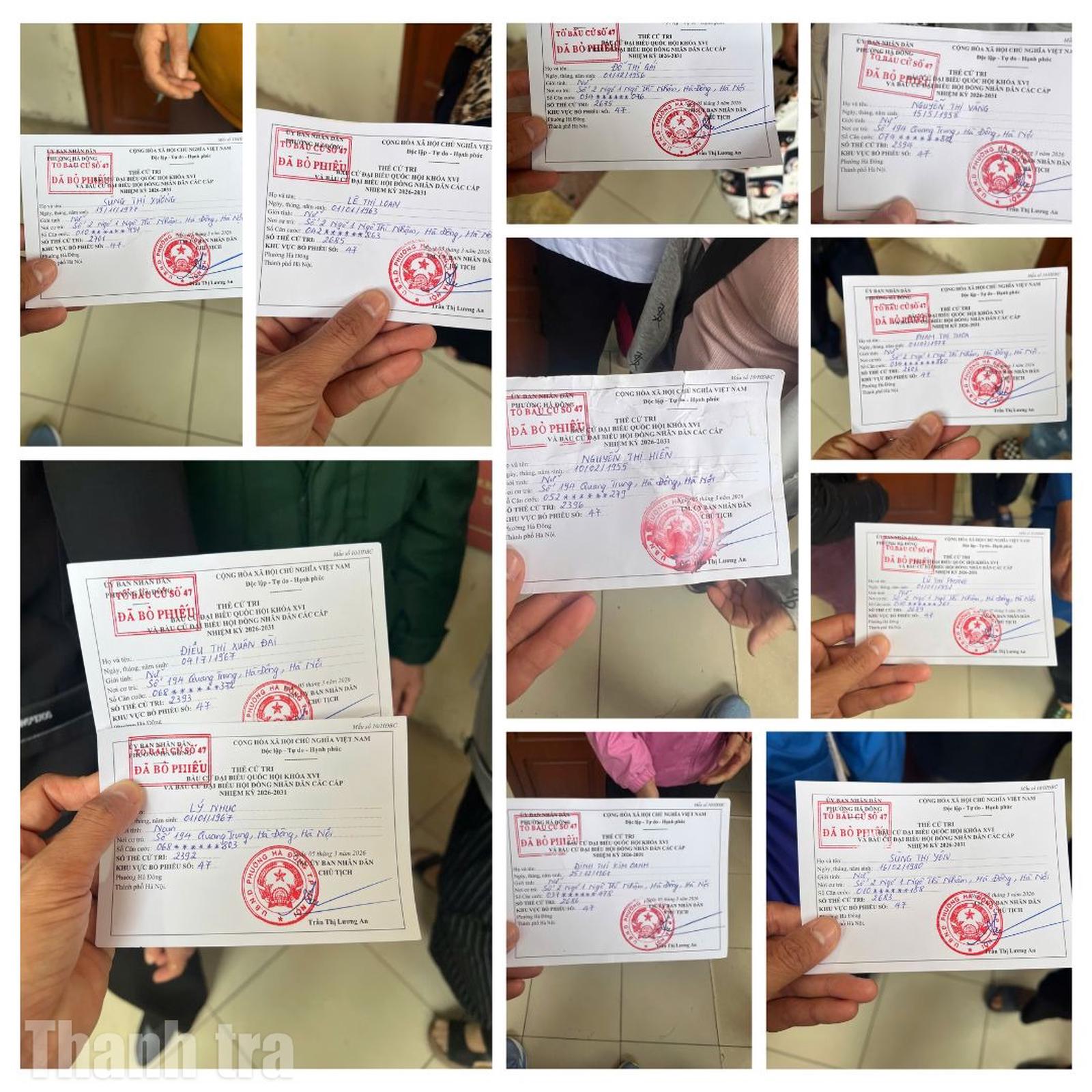 (Thanh tra) - Sáng 15/3/2026, tại Tổ bầu cử số 47, phường Hà Đông (TP Hà Nội), 26 công dân khiếu kiện từ một số tỉnh, thành phố đang lưu trú trên địa bàn đã thực hiện quyền bầu cử đại biểu Quốc hội khóa XVI và đại biểu HĐND các cấp nhiệm kỳ 2026–2031.