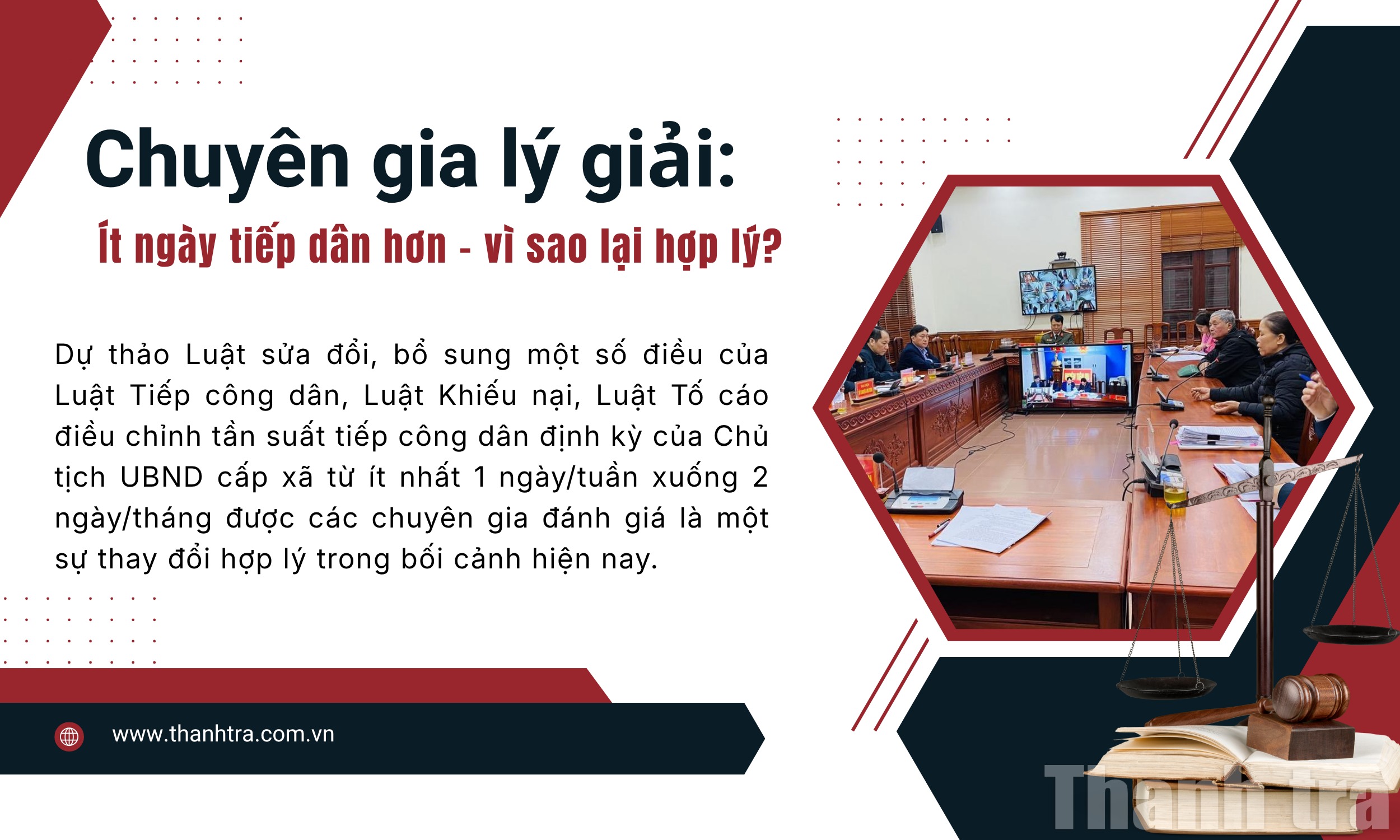 Đáng chú ý, dự thảo điều chỉnh tần suất tiếp công dân định kỳ của Chủ tịch UBND cấp xã từ ít nhất 1 ngày/tuần xuống 2 ngày/tháng, theo ông Huy, đó là một sự thay đổi hợp lý trong bối cảnh các cơ quan chuyên môn thuộc UBND xã được thành lập và có thể chia sẻ, hỗ trợ công tác tiếp dân, giải quyết vụ việc ngay tại cơ sở. “Cách thiết kế này hướng tới hiệu quả thực chất, tránh hình thức, đồng thời vẫn bảo đảm đúng tinh thần Quy định số 11-QĐi/TW của Bộ Chính trị về trách nhiệm người đứng đầu trong tiếp dân, đối thoại với dân,” ông Huy phân tích.
