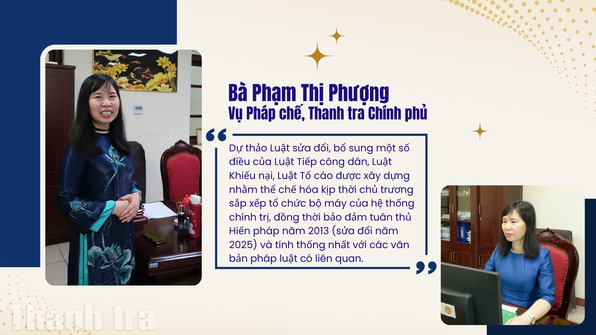 “Việc bãi bỏ các quy định này giúp tháo gỡ khó khăn và vướng mắc hiện nay nhưng cũng đặt ra yêu cầu phải cụ thể hóa các quy định về thẩm quyền giải quyết tố cáo phù hợp với mô hình chính quyền địa phương 2 cấp”, bà Phượng nói.