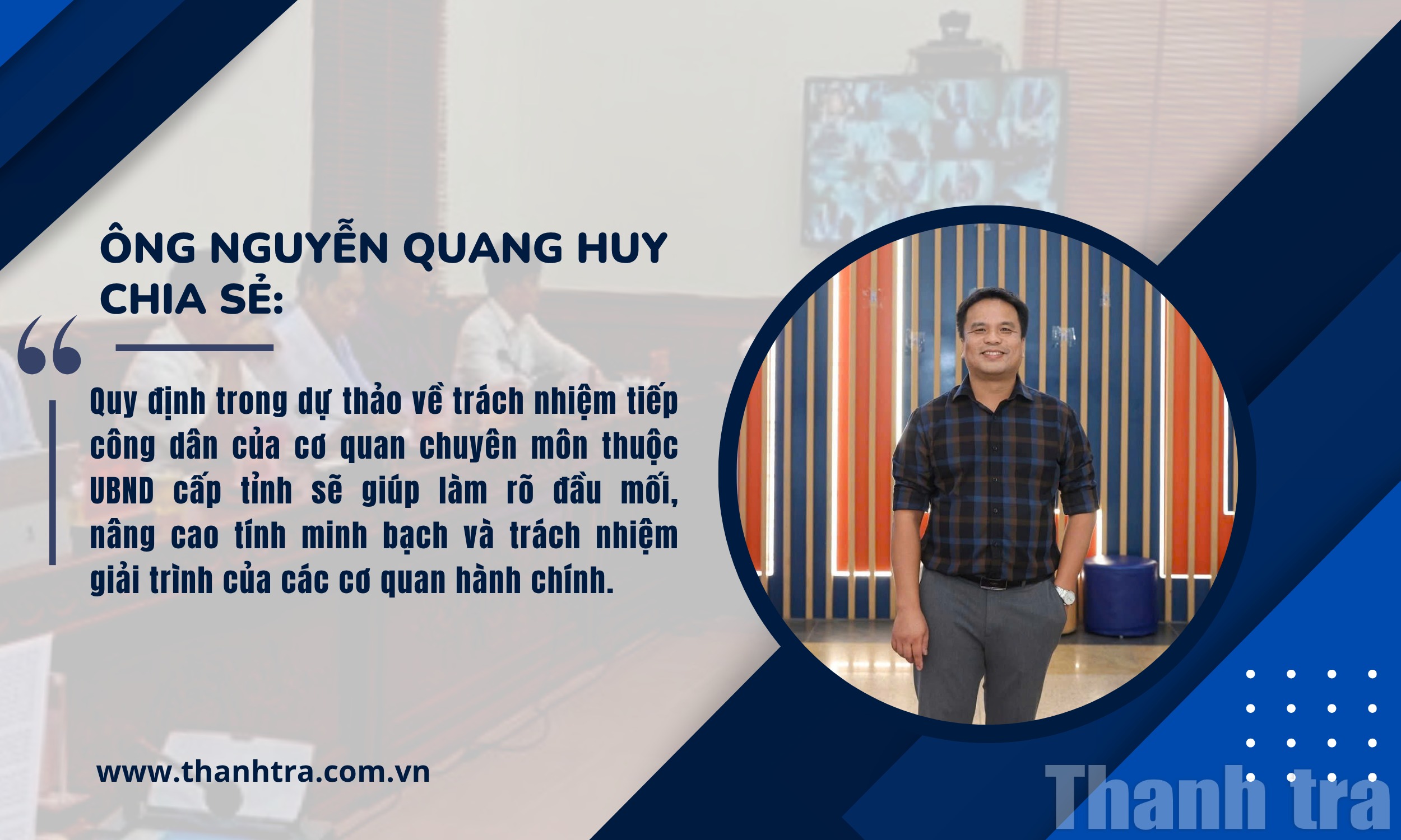 Ông Huy cũng cho rằng, quy định trong dự thảo về trách nhiệm tiếp công dân của cơ quan chuyên môn thuộc UBND cấp tỉnh sẽ giúp làm rõ đầu mối, nâng cao tính minh bạch và trách nhiệm giải trình của các cơ quan hành chính.