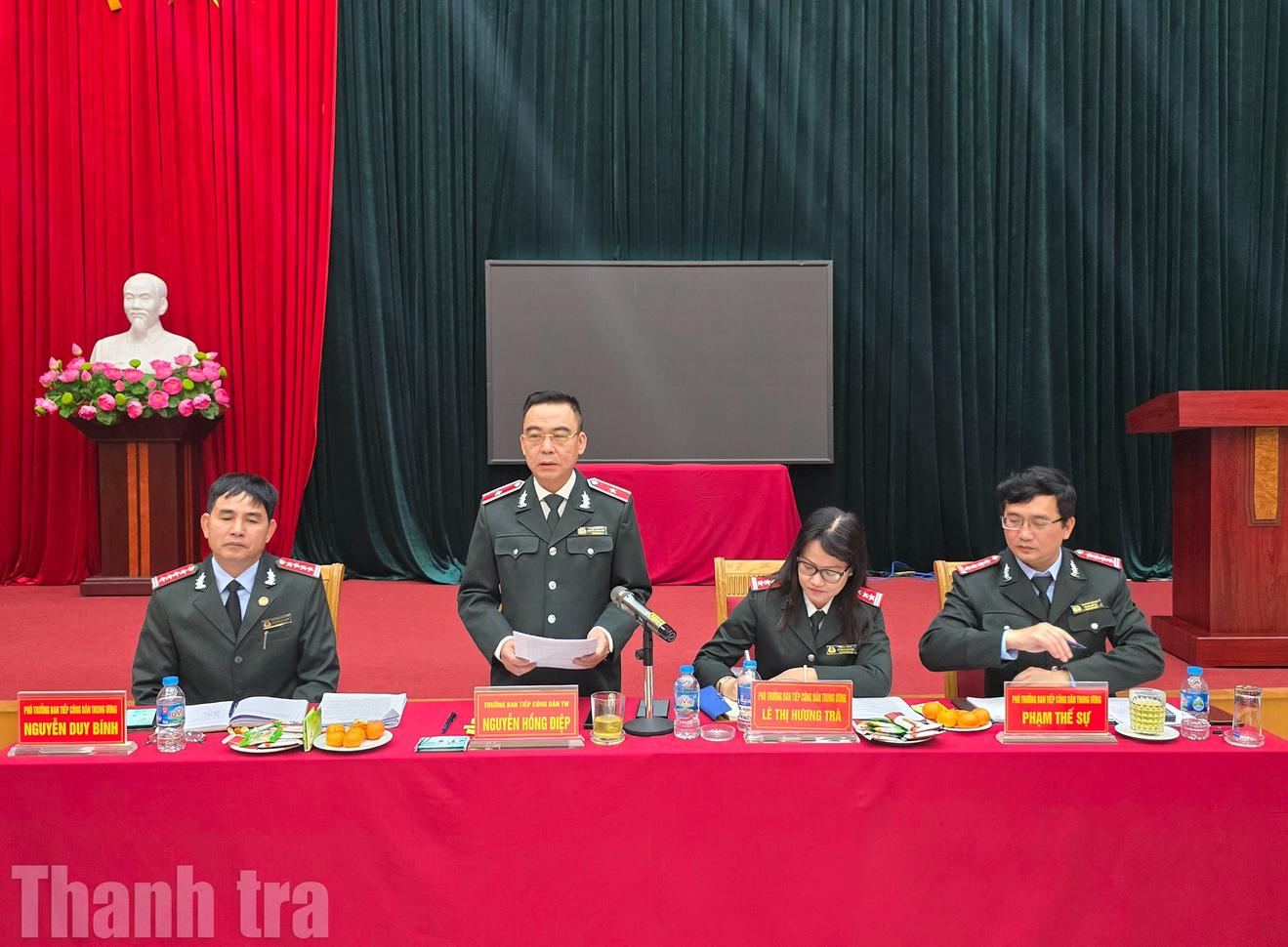 Phát biểu chỉ đạo Hội nghị, Trưởng Ban Tiếp công dân Trung ương Nguyễn Hồng Điệp ghi nhận và đánh giá cao nỗ lực, tinh thần trách nhiệm của toàn thể cán bộ, công chức, người lao động trong năm 2025. Ông nhấn mạnh, trong bối cảnh áp lực khiếu kiện gia tăng, nhiều nhiệm vụ phát sinh, khối lượng công việc lớn, Ban vẫn duy trì được nền nếp tiếp công dân, xử lý đơn thư, tham mưu kịp thời cho lãnh đạo Thanh tra Chính phủ, không để xảy ra sơ suất lớn, không để phát sinh điểm nóng phức tạp do chủ quan.