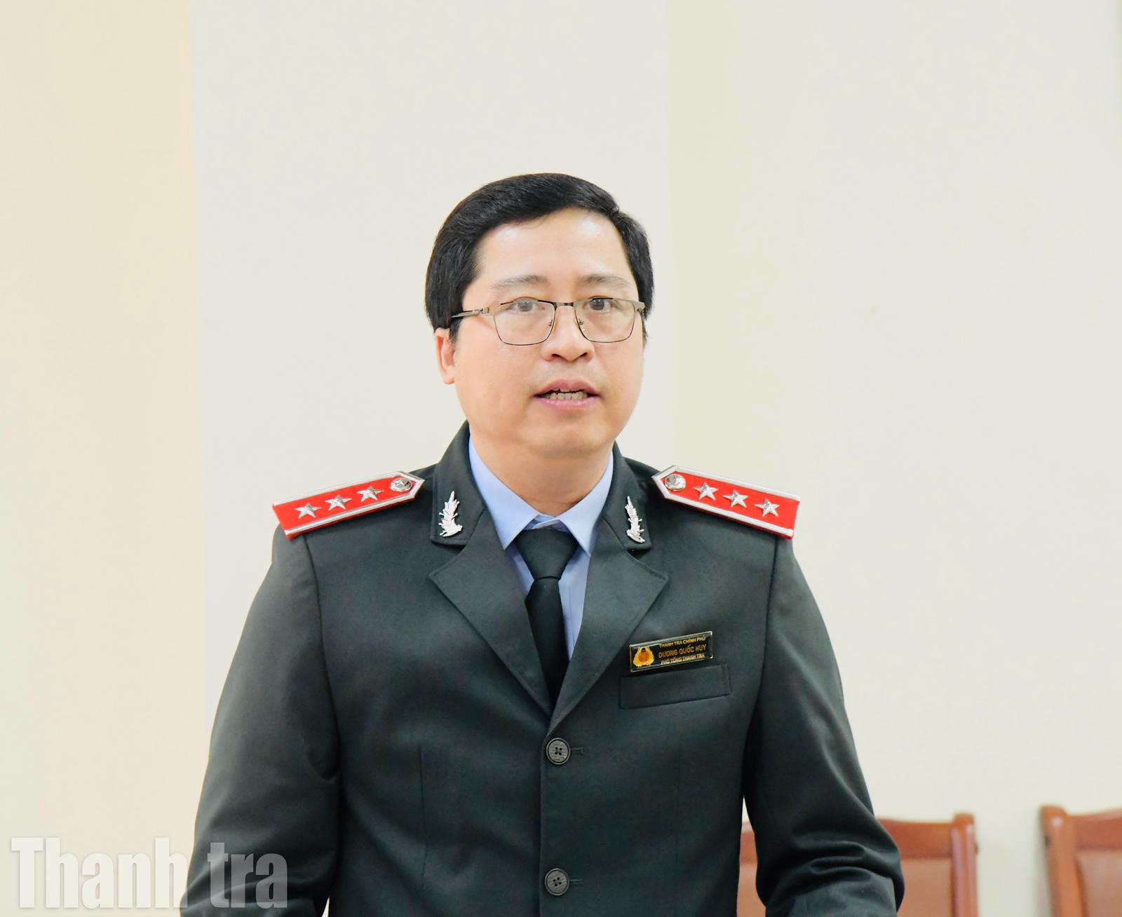 Ông Dương Quốc Huy, Phó Tổng Thanh tra Chính phủ, Tổ trưởng Tổ công tác, chủ trì buổi làm việc. Ảnh: Huy Trần