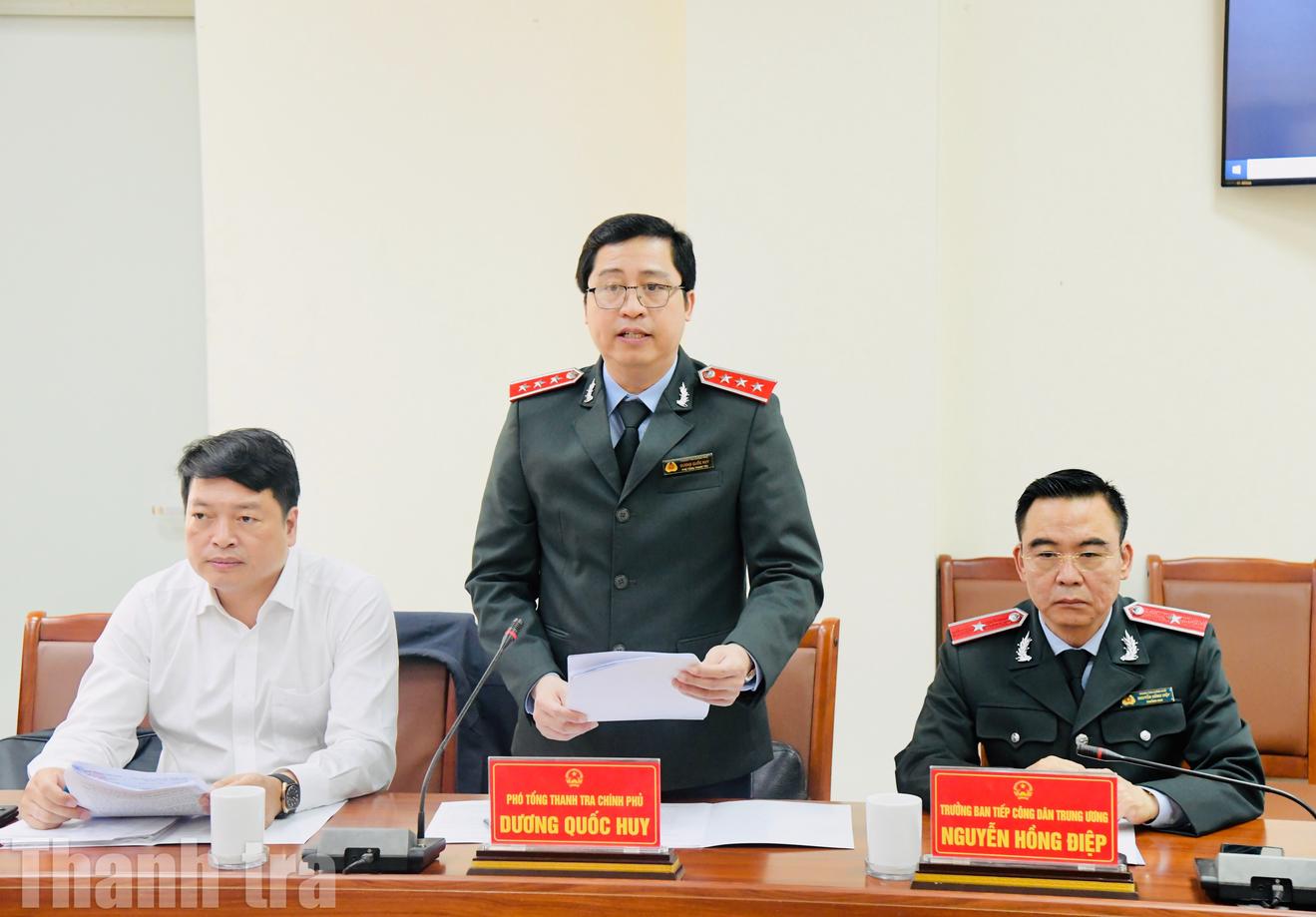 Phát biểu sau khi nghe báo cáo của địa phương và ý kiến của các cơ quan chức năng, Phó Tổng Thanh tra Chính phủ Dương Quốc Huy ghi nhận Quảng Ninh đã bám sát đề cương yêu cầu, báo cáo tương đối đầy đủ, rõ ràng về kết quả công tác tiếp công dân, xử lý đơn thư, giải quyết khiếu nại, tố cáo trong các năm 2024–2025. Các chỉ tiêu chính như số lượt công dân, số vụ việc, số đoàn đông người và số vụ việc thuộc thẩm quyền đều giảm trong hai năm liên tiếp, trong khi hoạt động kinh tế – xã hội trên địa bàn phát triển mạnh, nhiều dự án lớn được triển khai, mô hình chính quyền hai cấp được đưa vào vận hành.