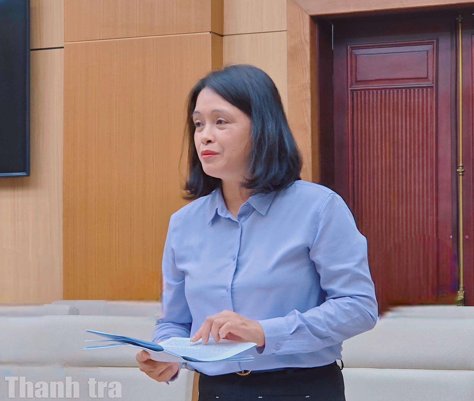 Bà Lại Thị Tuyết Lan, Phó Chánh Thanh tra tỉnh Phú Thọ báo cáo tại buổi làm việc. Ảnh: Lan Anh