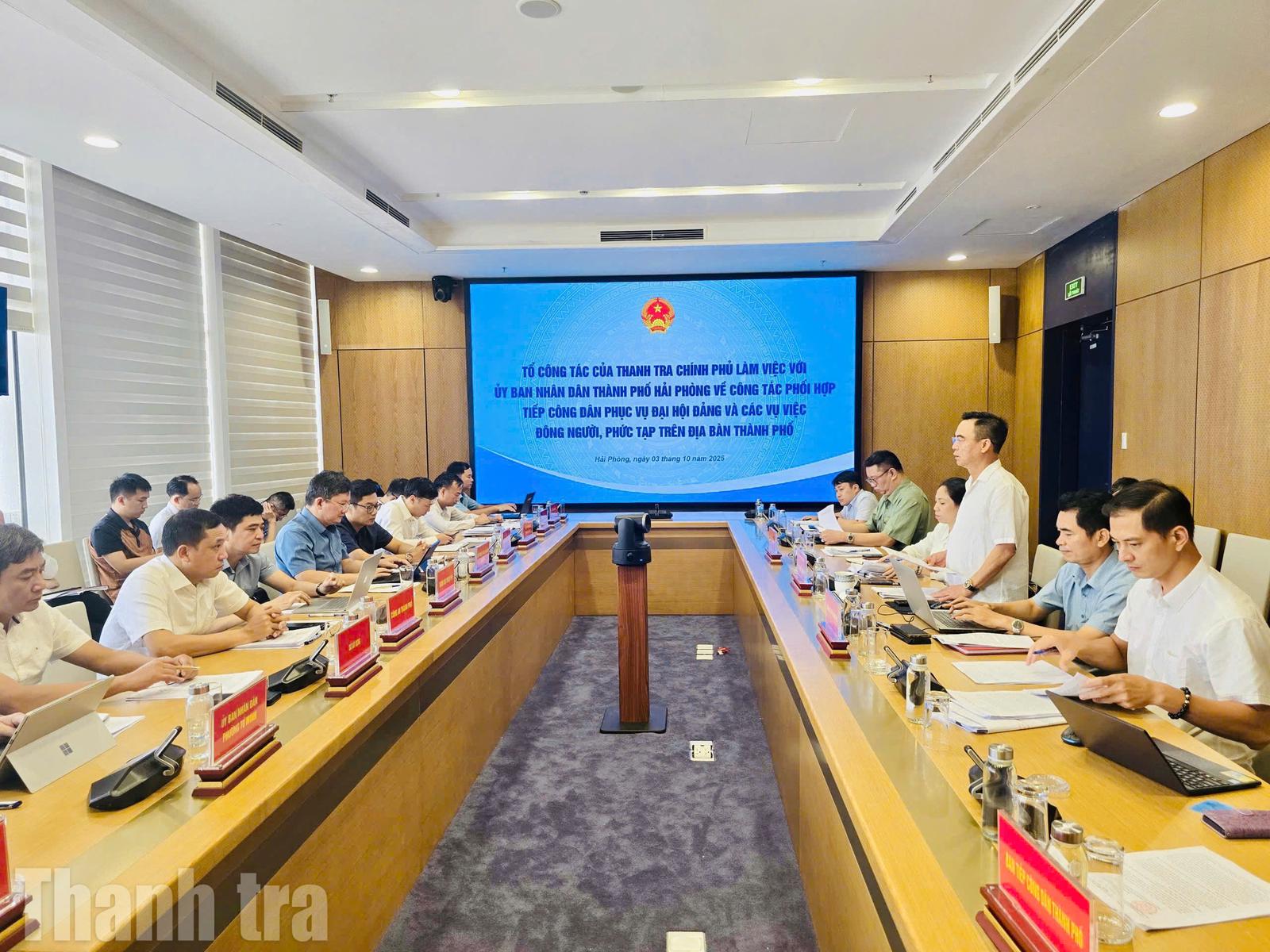 "Kết quả vừa qua cho thấy Hải Phòng đã kiểm soát tốt tình hình khiếu nại, tố cáo đông người, phức tạp. Trong kỳ phục vụ Đại hội Đảng, thành phố không phát sinh “điểm nóng”, không để công dân kéo dài lưu trú ở Thủ đô. Đó là thành công lớn, thể hiện rõ sự phối hợp hiệu quả giữa chính quyền và Công an TP", Tổ trưởng Tổ công tác của Thanh tra Chính phủ nhấn mạnh.