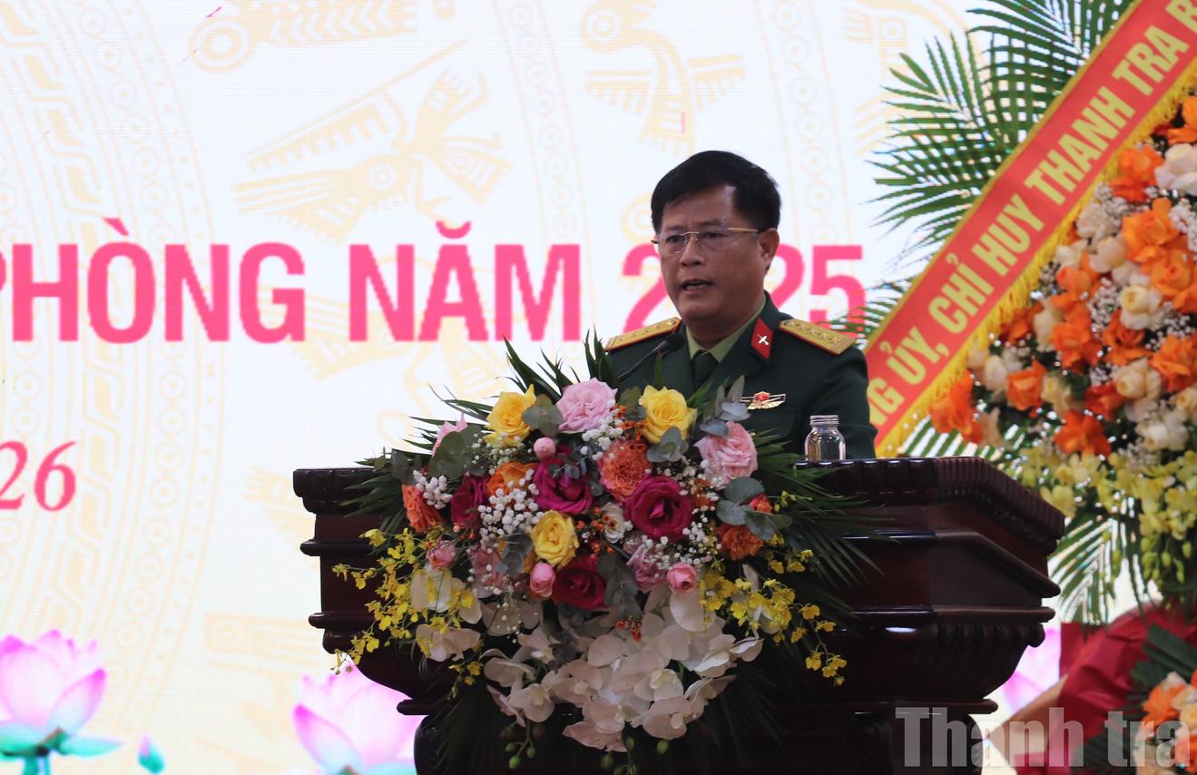 Đại tá Nguyễn Trung Nghĩa, Chánh Thanh tra Quốc phòng Quân khu 4 phát biểu tại Hội nghị tổng kết công tác thanh tra quốc phòng năm 2025. Ảnh: Dương Nguyễn