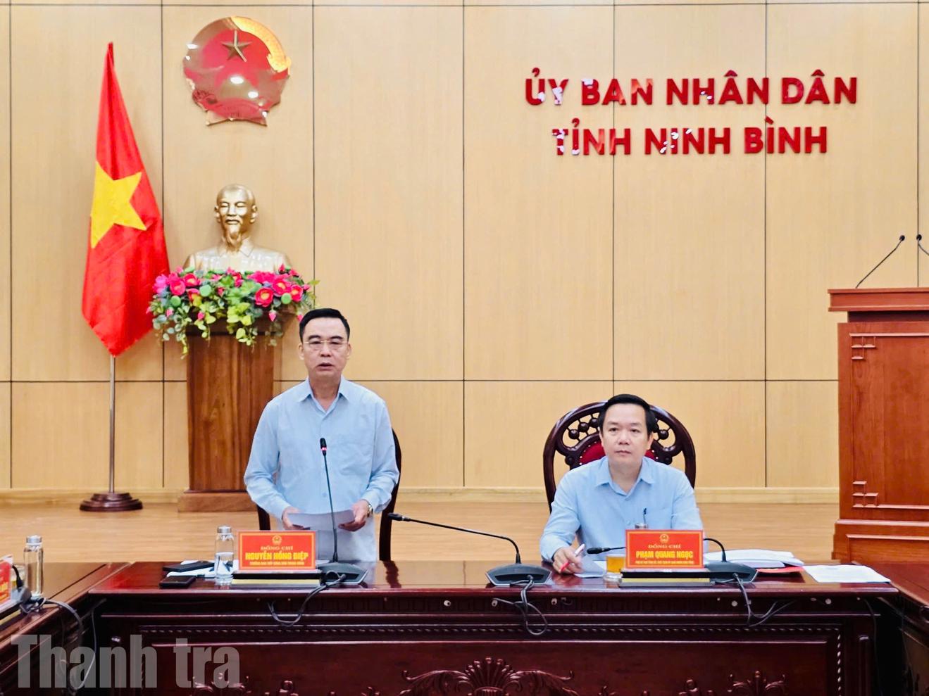Về phía tỉnh Ninh Bình, buổi làm việc do ông Phạm Quang Ngọc, Chủ tịch UBND tỉnh Ninh Bình, đồng chủ trì và đại diện lãnh đạo Thanh tra tỉnh, Công an tỉnh, Ban Tiếp công dân, các sở, ngành, địa phương và đại diện Đoàn công tác của Thanh tra Chính phủ.