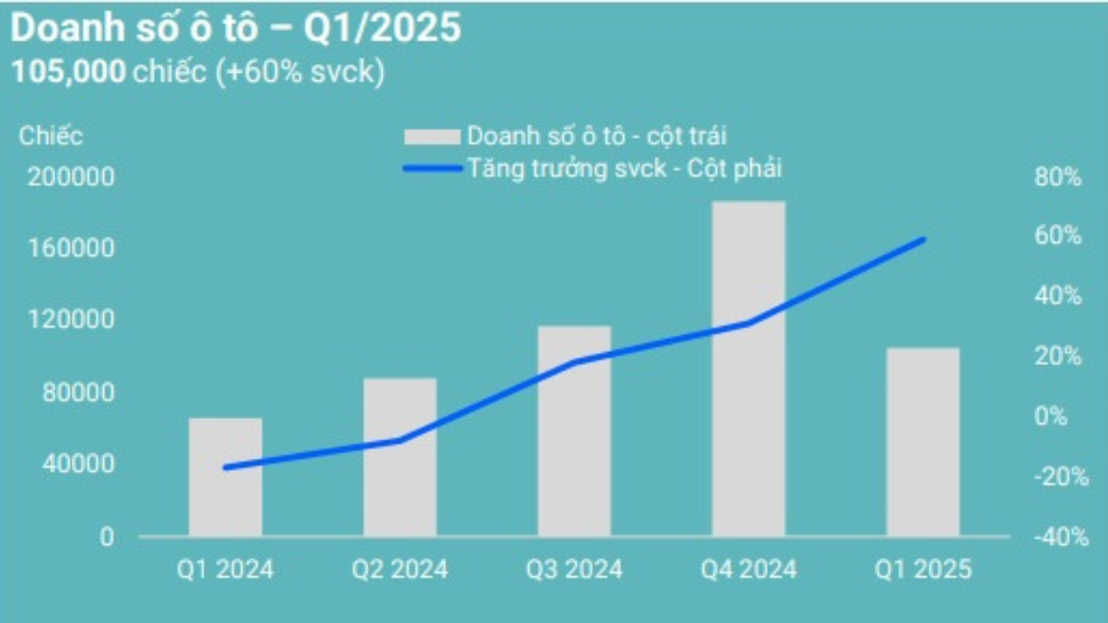 Theo báo cáo nhận định thị trường của VIS Rating (Đơn vị xếp hạng tín nhiệm uy tín thành lập từ vốn đầu tư của Moody's) công bố ngày 18/6, doanh số ô tô toàn thị trường trong quý đầu năm đạt 105.000 xe, tăng tới 60% so với cùng kỳ năm trước. Trong đó, riêng dòng xe điện của VinFast đã tăng trưởng 295%, trở thành động lực lớn nhất thúc đẩy tiêu dùng ngành xe.