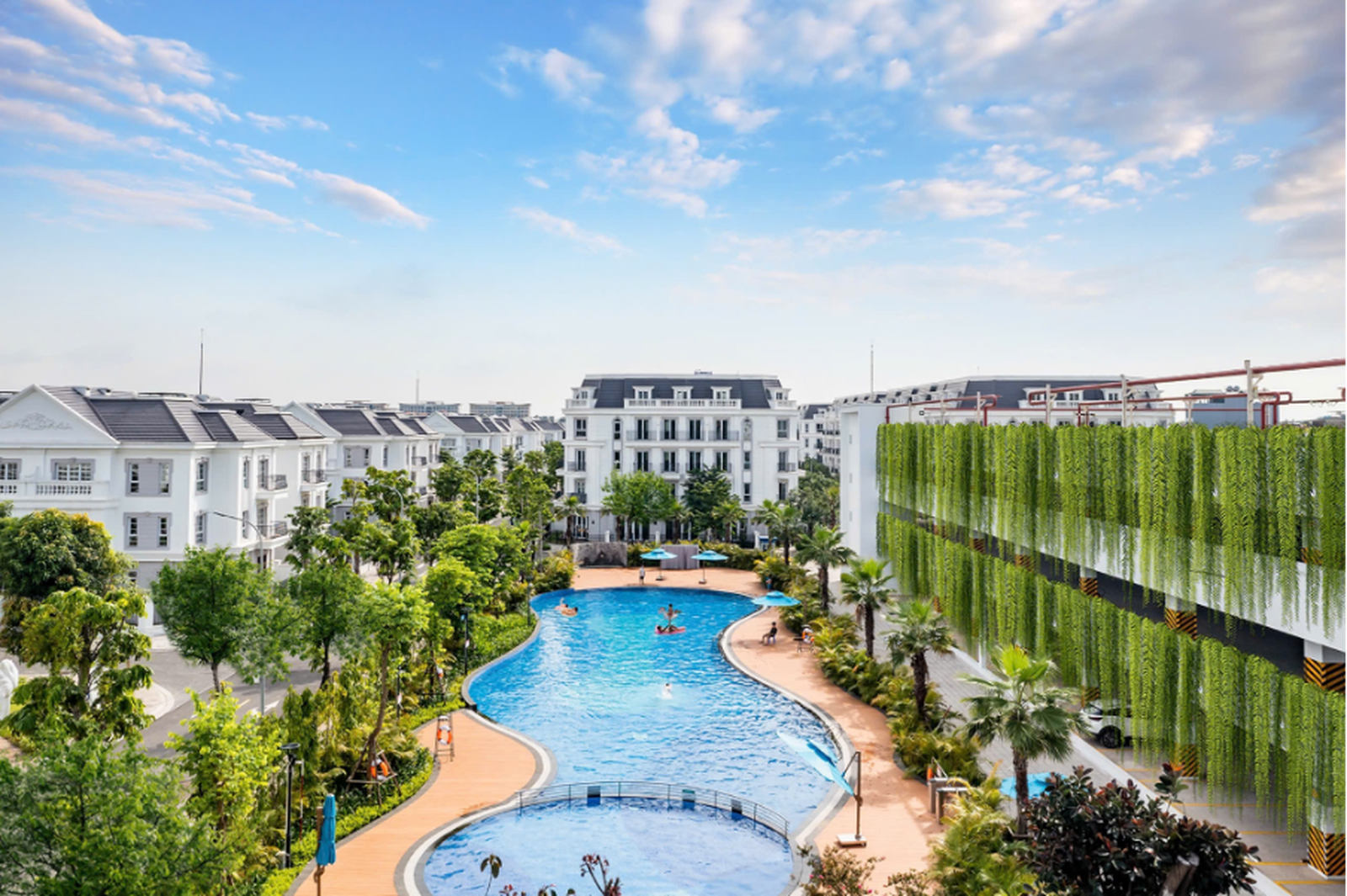 Hệ tiện ích của dự án được quy hoạch theo hướng phục vụ đời sống thực, bao gồm các không gian như bể bơi, khu BBQ, sân thể thao và khu vui chơi trẻ em, đáp ứng nhu cầu sinh hoạt hàng ngày của cư dân nhiều thế hệ. Điểm đáng chú ý là khu nhà để xe tập trung rộng gần 3.000m² được tách biệt khỏi khu ở, góp phần giữ cho hệ thống giao thông nội khu luôn thông suốt và môi trường sống gọn gàng, an toàn.